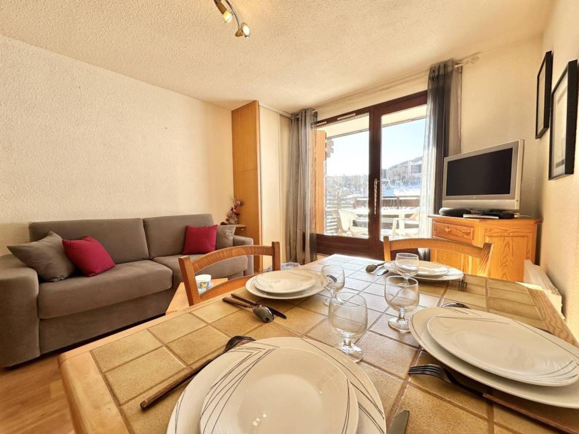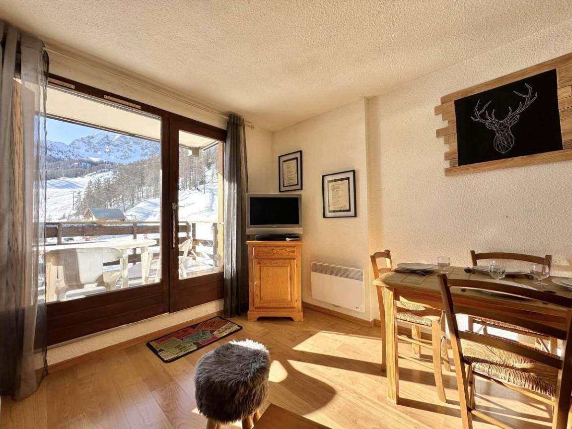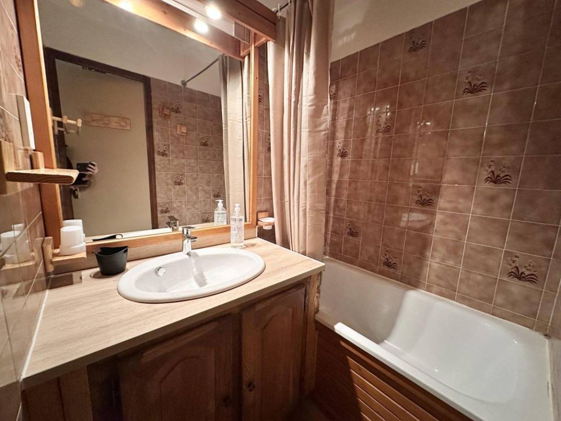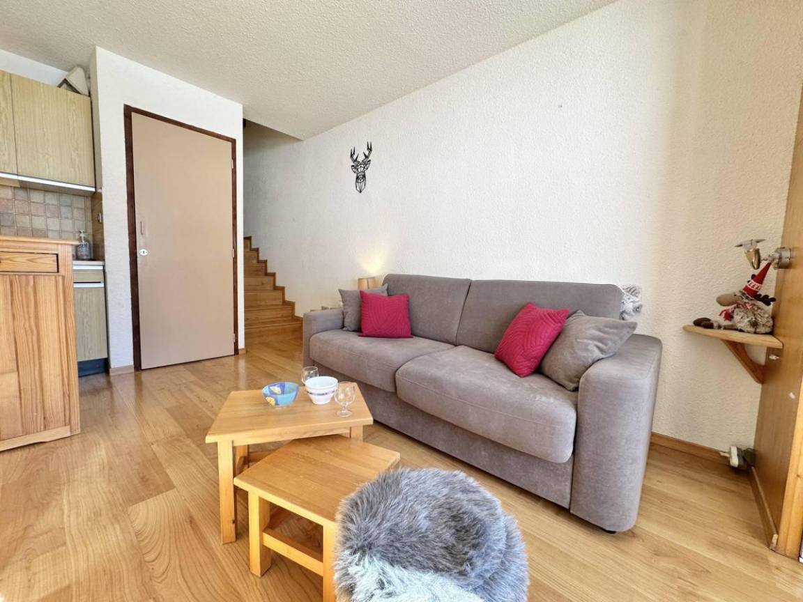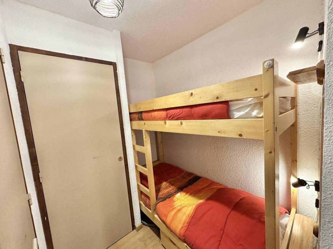 Fläche von ungefähr 21 m². Erdgeschoss. Orientierung : Ost, Süd-Ost, Süd. Blick skipisten. Niveau 0 : Wohnzimmer mit Klappschlafcouch (140*190), TV. Küche mit Kaffeemaschine (senseo), Backofen, Geschirrspülmaschine, Mikrowellenherd, Kühlschrank. Balkon mit Gartentisch und -stühle. Niveau 1 : Schlafbereich mit 2 Stockbetten (90*190). Badezimmer. WC. Die oberen Betten sind nicht für Kinder unter 6 Jahren geeignet.