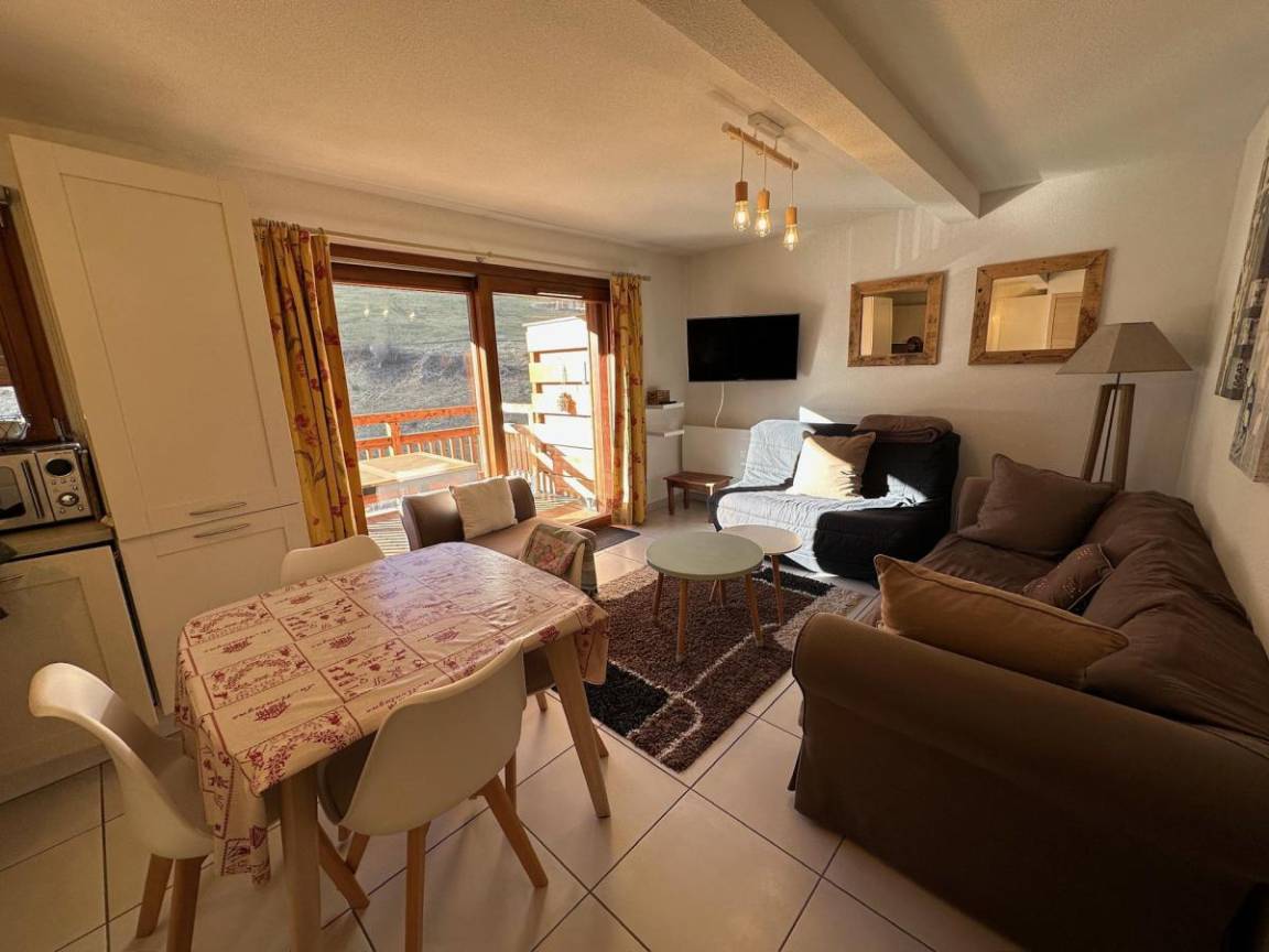 Le village de Sainte Marie, chef lieu de la station est le hameau le plus authentique du domaine avec ses anciennes bâtisses à l'architecture locale et traditionnelle. Depuis votre appartement vous aurez accès à pied à toutes les commodités (commerces, restauration, animations) mais surtout aux premières remontées mécaniques. Les appartements sont orientés Sud Sud-Ouest et offrent des prestations de standing. Fläche von ungefähr 47 m². 4te Etage. Orientierung : Süd, West. Wohnzimmer mit Klappschlafcouch. Schlafzimmer mit Doppelbett. offener Schlafbereich mit 2 Stockbetten. Kochnische mit Fonduegerät, Raclettegerät, Wasserkocher, Kaffeemaschine (Senseo), Backofen, Toaster, Waschmaschine, Geschirrspülmaschine, Mikrowellenherd, 2 Glaskeramikkochfelder, Kühl-Gefrier-Kombination. Waschräume mit Dusche. separates WC. Balkon. Die oberen Betten sind nicht für Kinder unter 6 Jahren geeignet.