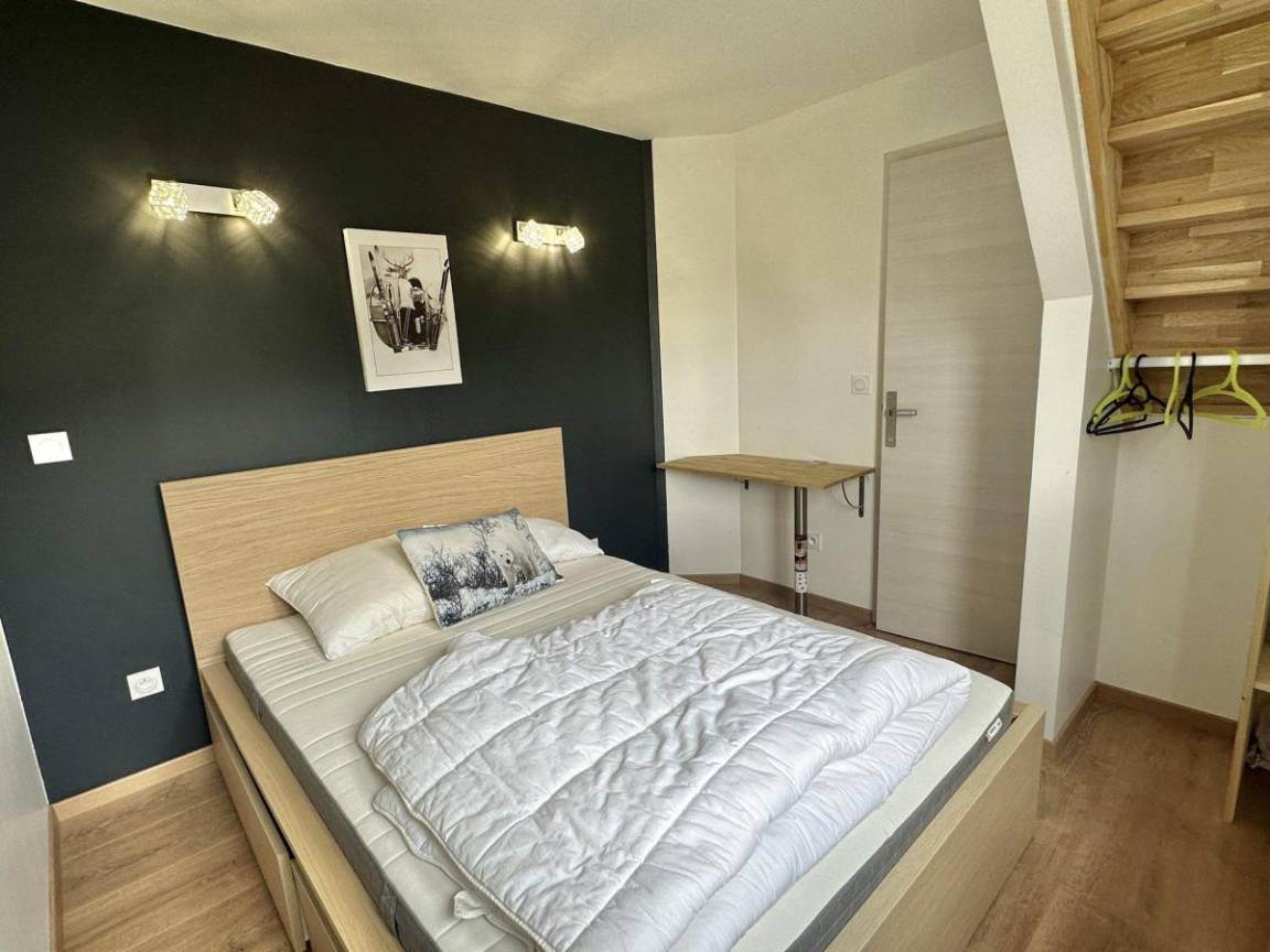 Fläche von ungefähr 80 m². 1te Etage. Orientierung : Ost, Süd. Blick berg. Niveau 0 : Wohnzimmer. Schlafzimmer mit Doppelbett, Waschraum. Kochnische mit Fonduegerät, Raclettegerät, Kaffeemaschine (Nespresso), kleiner Backofen mit Mikrowellenfunktion, Geschirrspülmaschine, Mikrowellenherd, 2 Induktionsherdplatten, Kühlschrank. 2 separate WCs. Balkon. Waschmaschine. Niveau -1 : 2 Schlafzimmer mit Doppelbett. Waschräume.