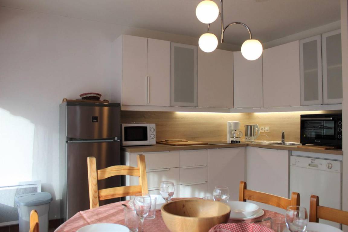 Fläche von ungefähr 49 m². Orientierung : West. Wohnzimmer mit Klappschlafcouch (140). Schlafzimmer mit Doppelbett (140). offener Schlafbereich mit 2 Stockbetten (90). Kochnische mit Wasserkocher, Kaffeemaschine, kleiner Backofen mit Mikrowellenfunktion, Toaster, Geschirrspülmaschine, kleiner Backofen, Glaskeramikkochfelder, Kühl-Gefrier-Kombination. Badezimmer mit Badewanne. separates WC. Balkon. Die oberen Betten sind nicht für Kinder unter 6 Jahren geeignet.
