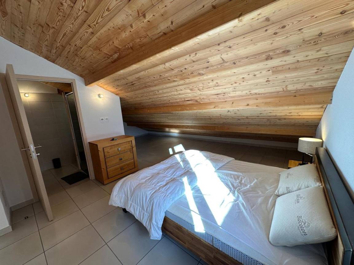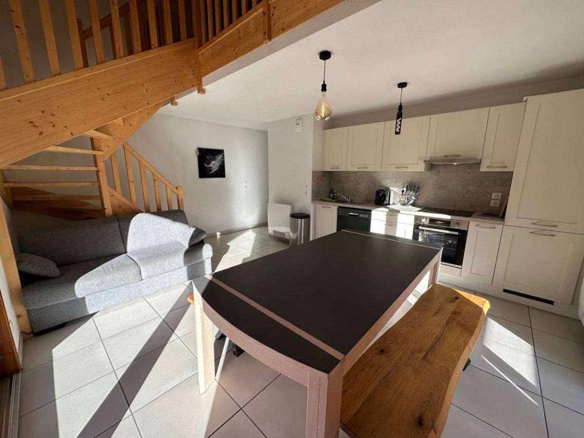 Le village de Sainte Marie, chef lieu de la station est le hameau le plus authentique du domaine avec ses anciennes bâtisses à l'architecture locale et traditionnelle. Depuis votre appartement vous aurez accès à pied à toutes les commodités (commerces, restauration, animations) mais surtout aux premières remontées mécaniques. Les appartements sont orientés Sud Sud-Ouest et offrent des prestations de standing. Fläche von ungefähr 47 m². 3te Etage. Orientierung : Ost, Süd. Niveau 0 : Wohnzimmer mit Klappschlafcouch. Schlafzimmer mit Doppelbett (140). Schlafzimmer mit 2 Stockbetten. Kochnische mit Fonduegerät, Wasserkocher, Kaffeemaschine (Ta), Backofen, Toaster, Waschmaschine, Geschirrspülmaschine, Mikrowellenherd, 2 Induktionsherdplatten, Kühl-Gefrier-Kombination. Waschräume mit WC. Balkon. Niveau 1 : Schlafzimmer mit Doppelbett (160). Waschräume mit WC. Die oberen Betten sind nicht für Kinder unter 6 Jahren geeignet.
