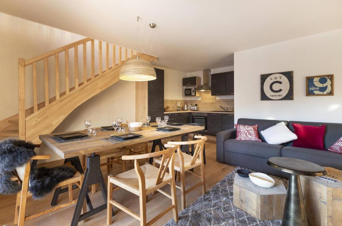 Fläche von ungefähr 77 m². Einige als Maisonette. Orientierung : Süd. Wohnzimmer mit Klappschlafcouch (140*200). Schlafzimmer mit Dusche, Doppelbett (160*200), WC. Schlafzimmer mit 2 Einzelbetten. offener Schlafbereich mit 2 Stockbetten (80). Küche mit Wasserkocher, Kaffeemaschine (nespresso), Backofen, Toaster, Geschirrspülmaschine, Mikrowellenherd, 2 Glaskeramikkochfelder, Kühlschrank. Badezimmer. separates WC. Balkon. Die oberen Betten sind nicht für Kinder unter 6 Jahren geeignet.