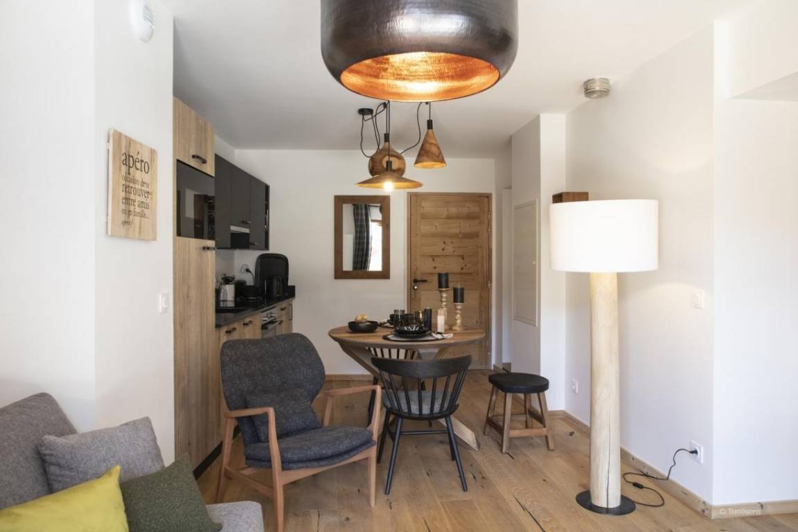 L'Etendard ist eine Residenz mit hochwertigen und raffinierten Dienstleistungen. Die Apartments sind mit Sorgfalt und im Einklang mit dem Berggeist eingerichtet. Während Ihres Aufenthalts genießen Sie eine klare Sicht auf die Berge. Fläche von ungefähr 40 m². Orientierung : Süd. Wohnzimmer mit Klappschlafcouch (140*200). Schlafzimmer mit Doppelbett (160*200). Kochnische mit Wasserkocher, Kaffeemaschine, Backofen, Toaster, Geschirrspülmaschine, Mikrowellenherd, 2 Glaskeramikkochfelder, Kühlschrank. Waschräume mit Handtuchtrockner, WC. Balkon.