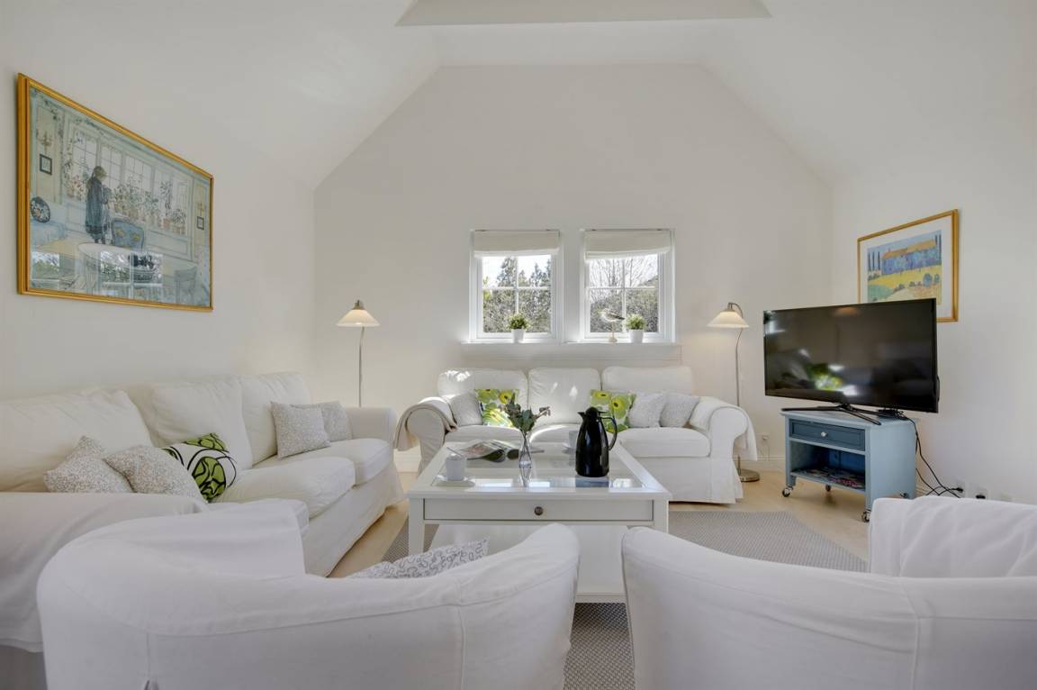 „The holiday home itself: Upraktisk med hvit salong“