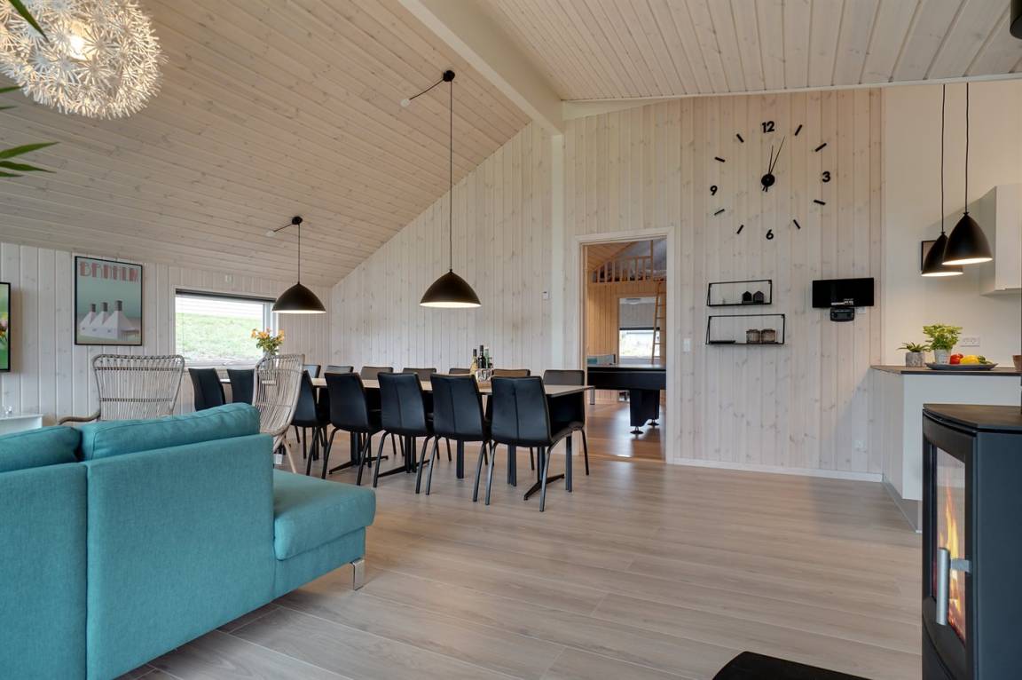 Das Ferienhaus eignet sich für 14 Personen. Die Ferienunterkunft hat eine Wohnfläche von 186 m² und wurde 2019 gebaut. Haustiere dürfen nicht mitgebracht werden. Die Ferienunterkunft ist mit energiesparender Wärmepumpe ausgestattet. Fußbodenheizung in allen Räumen. Die Ferienunterkunft ist mit Waschmaschine ausgestattet. Wäschetrockner. Tiefkühlmöglichkeit mit 250 Liter Nutzinhalt. Es gibt außerdem einen Kaminofen. Für die jüngsten Feriengäste ist 1 Kinderhochstuhl vorhanden. Wickeltisch.