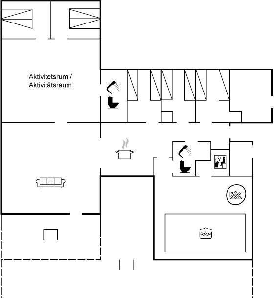 Ein schönes und geschmackvoll eingerichtetes Aktivitätshaus, in dem ihr viel Platz zum Entspannen und Spielen habt. Das Haus bietet unter anderem einen Swimmingpool, einen Whirlpool und eine Sauna sowie einen Aktivitätsraum mit verschiedenen unterhaltsamen Angeboten für die ganze Familie.