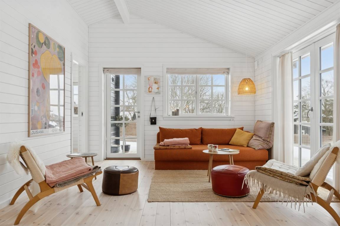 Das Haus ist modern und hell eingerichtet und strahlt eine ruhige Atmosphäre aus. Draußen erwartet dich der private Wellnessbereich des Hauses mit Hot Tub und Außensauna, den du das ganze Jahr über genießen kannst – ideal nach einem Tag am Strand oder nach Ausflügen in die Umgebung.