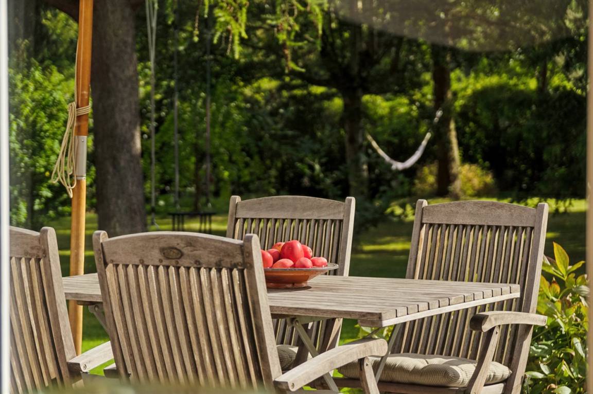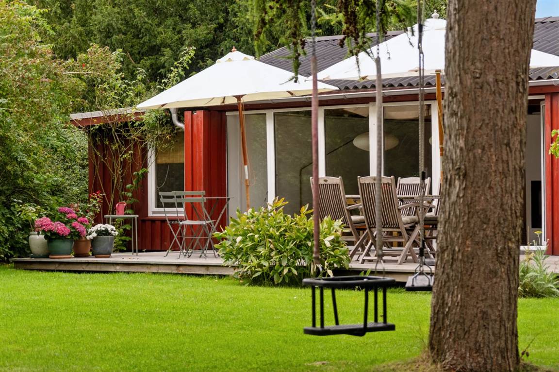 In der offenen Wohnküche gibt es Platz für gemeinsames Kochen und gemütliches Zusammensein. Entspanne dich und spiele im Garten – und genieße das Essen vom Grill. Am Ende des Gartens befindet sich das Gästehaus.