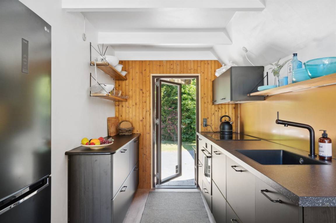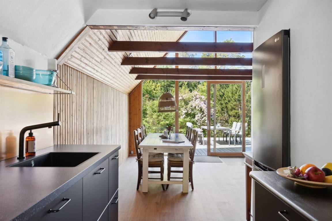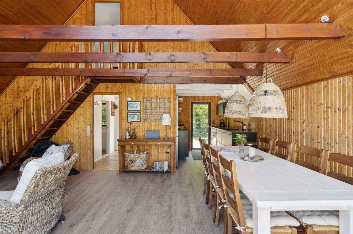 Schönes Ferienhaus in ruhiger Umgebung in einem attraktiven Ferienhausgebiet, nur 300 Meter von einer privaten Strandtreppe mit eigenem Schlüssel entfernt. Das Haus wurde teilweise 2020 und 2024 renoviert und mit neuen energieeffizienten Fenstern sowie einer modernen Wärmepumpe ausgestattet. Im Jahr 2022 wurde eine große Holzterrasse auf der Westseite mit direktem Zugang vom Wohnzimmer hinzugefügt sowie eine Ladestation für Elektroautos installiert. 2024 wurde eine neue Küche mit modernen, energieeffizienten Geräten eingebaut.