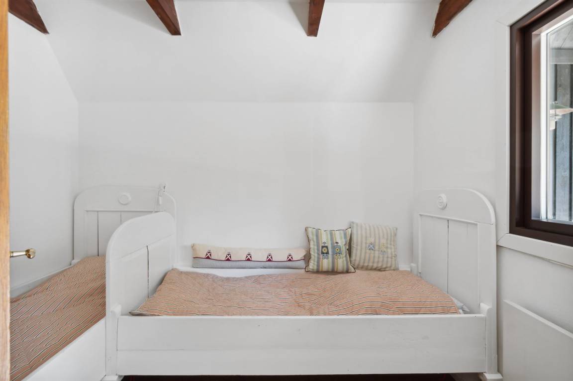 Im Haus gibt es ein schönes Schlafzimmer im ersten Stock mit Zugang zu einer großen, nach Osten ausgerichteten Terrasse. Das zweite Schlafzimmer verfügt über Einzelbetten mit einer Größe von 72x172 cm.