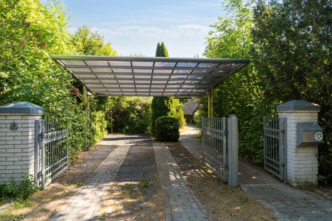 Es gibt einen Geräteschuppen sowie Schaukeln für die Kinder. Zudem steht ein Carport zur Verfügung, in der sich eine Ladestation für Elektroautos mit einem Typ-2-Stecker (CEE-Steckdose mit 11 kW Ladeleistung) befindet.