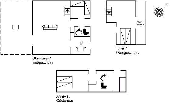 SchlafverhältnisseDie Schlafplätze verteilen sich auf 4 Schlafräume. 4 Schlafplätze in Doppelbetten. 2 Schlafplätze in Einzelbetten. 2 Schlafplätze in einem Etagenbett. 4 von diesen Schlafplätzen verteilen sich auf 2 Gästehäuser.