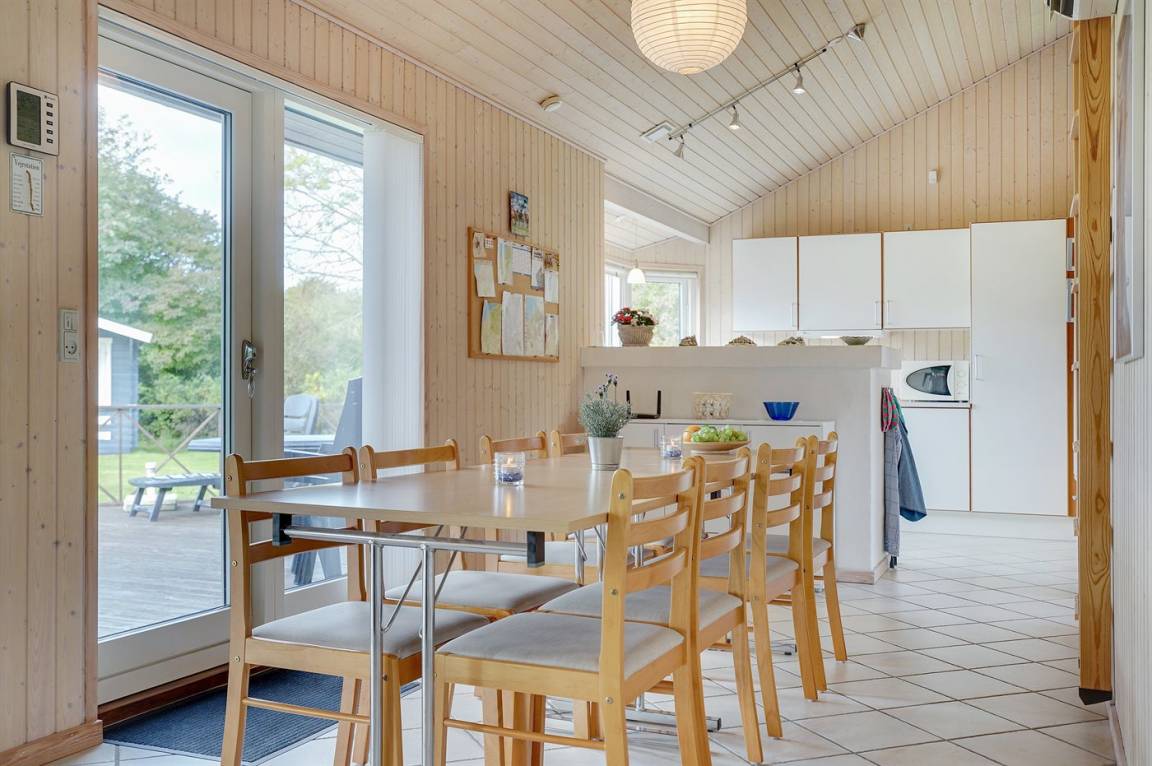 EinrichtungDas Ferienhaus eignet sich für 8 Personen. Die Ferienunterkunft hat eine Wohnfläche von 102 m² und wurde 2004 gebaut. Haustiere dürfen nicht mitgebracht werden. Die Ferienunterkunft ist mit energiesparender Wärmepumpe ausgestattet. Fußbodenheizung im Wohnzimmer. Die Ferienunterkunft ist mit Waschmaschine ausgestattet. Wäschetrockner. Tiefkühlmöglichkeit mit 87 Liter Nutzinhalt. Es gibt außerdem einen Kaminofen. Für die jüngsten Feriengäste ist 1 Kinderhochstuhl vorhanden.