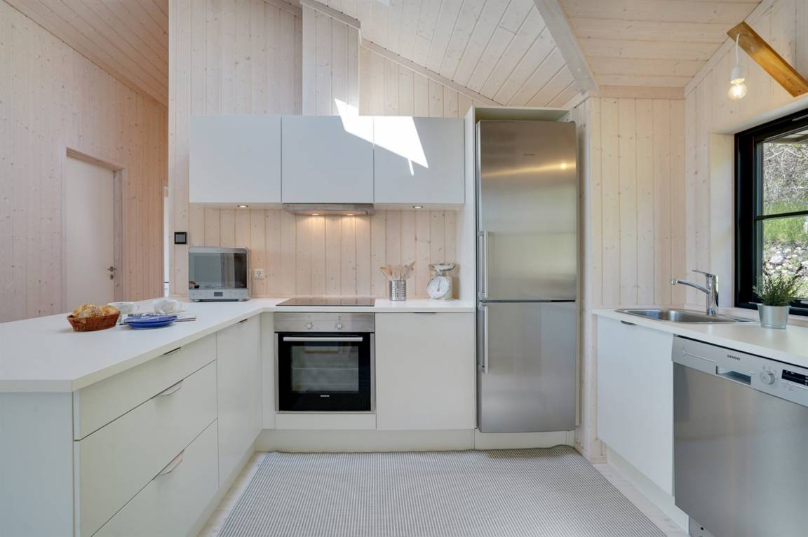 KücheDie Küche ist mit Kühlschrank ausgestattet. Außerdem gibt es 4 Induktions-Kochzonen, Umluftofen, Mikrowelle sowie Geschirrspüler.