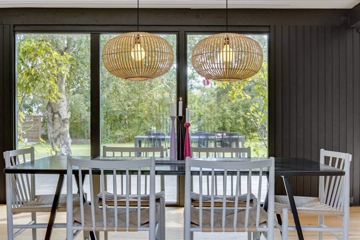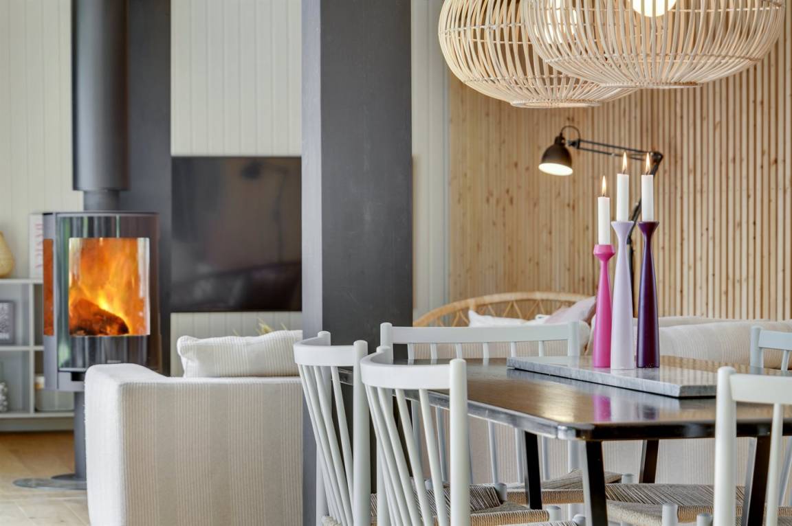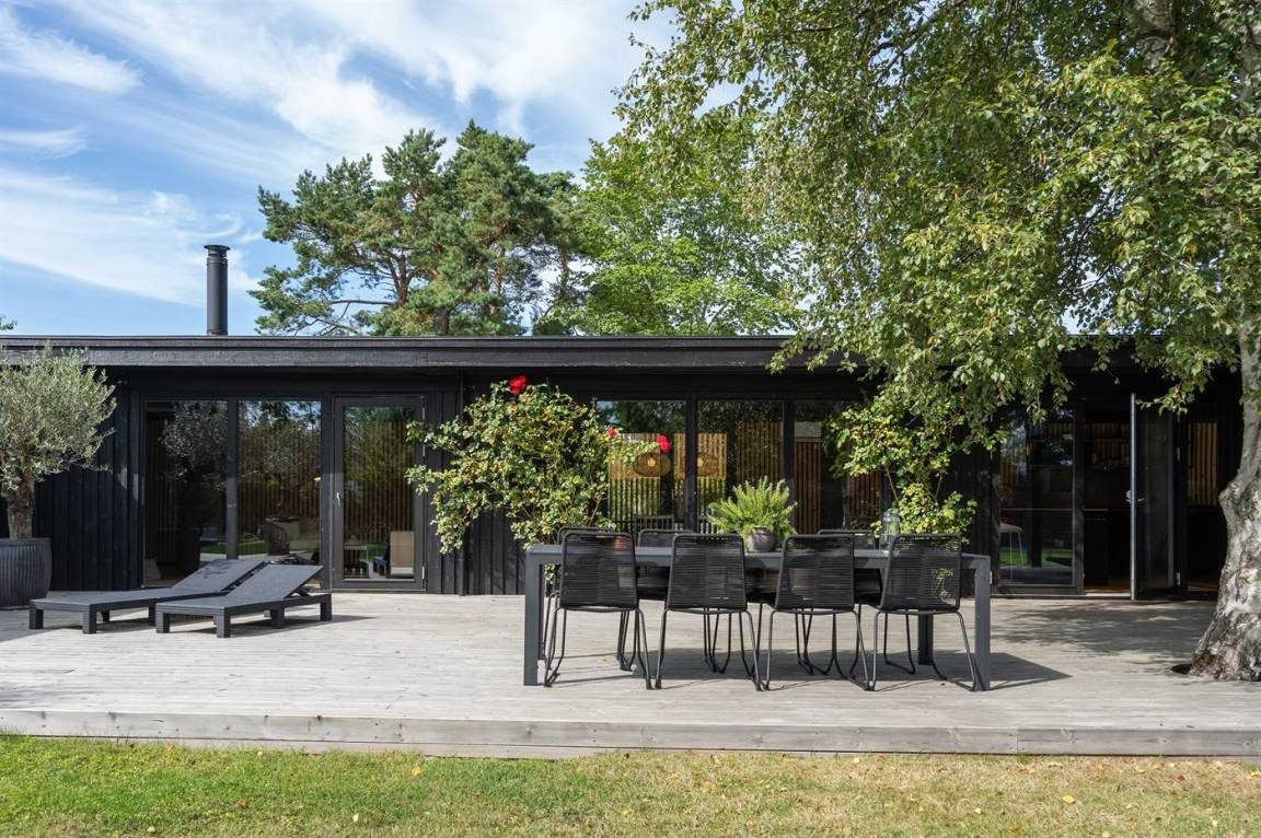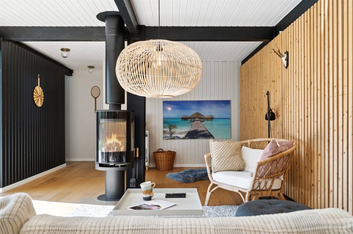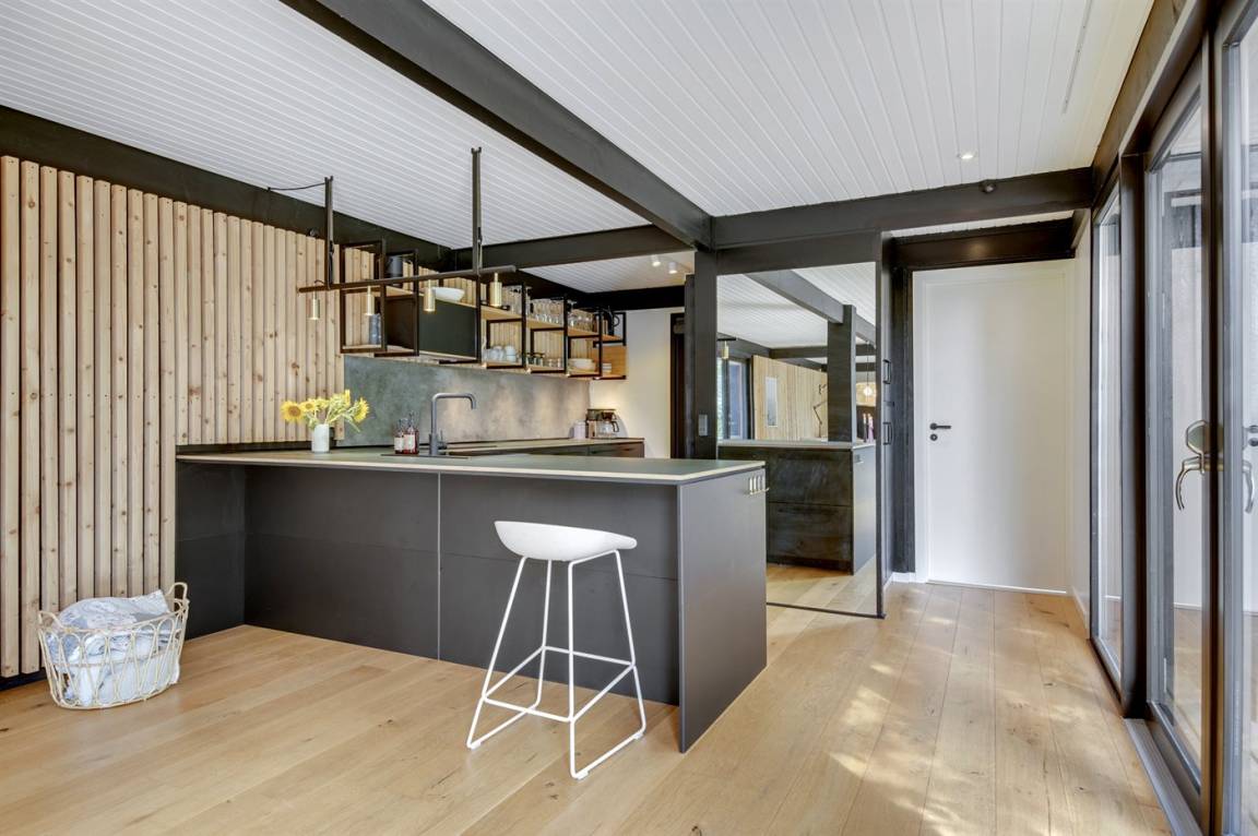 Das Ferienhaus ist komplett mit hochwertigen Materialien renoviert, präsentiert sich modern und mit viel Tageslicht durch die großen Fensterfronten. Küche, Essbereich und Wohnzimmer sind offen verbunden – zusammen mit der 130 m² großen Holzterrasse bildet es den natürlichen Mittelpunkt für gemütliches Beisammensein mit Familie und Freunden.