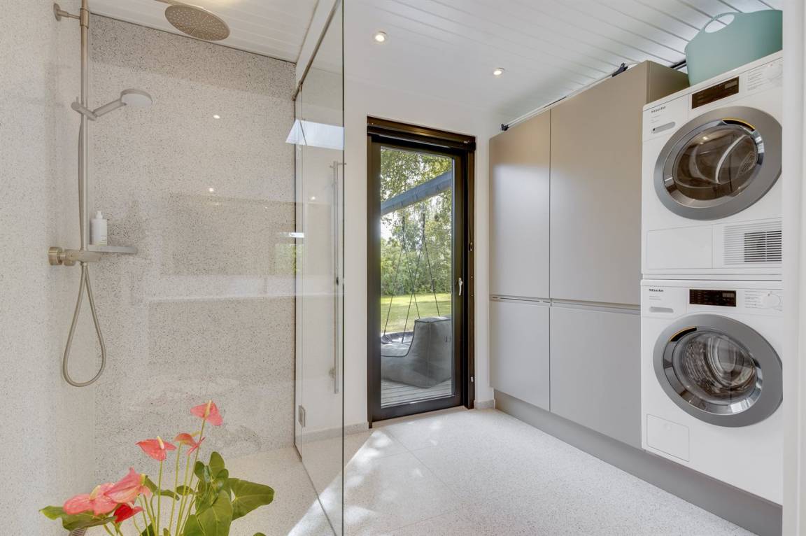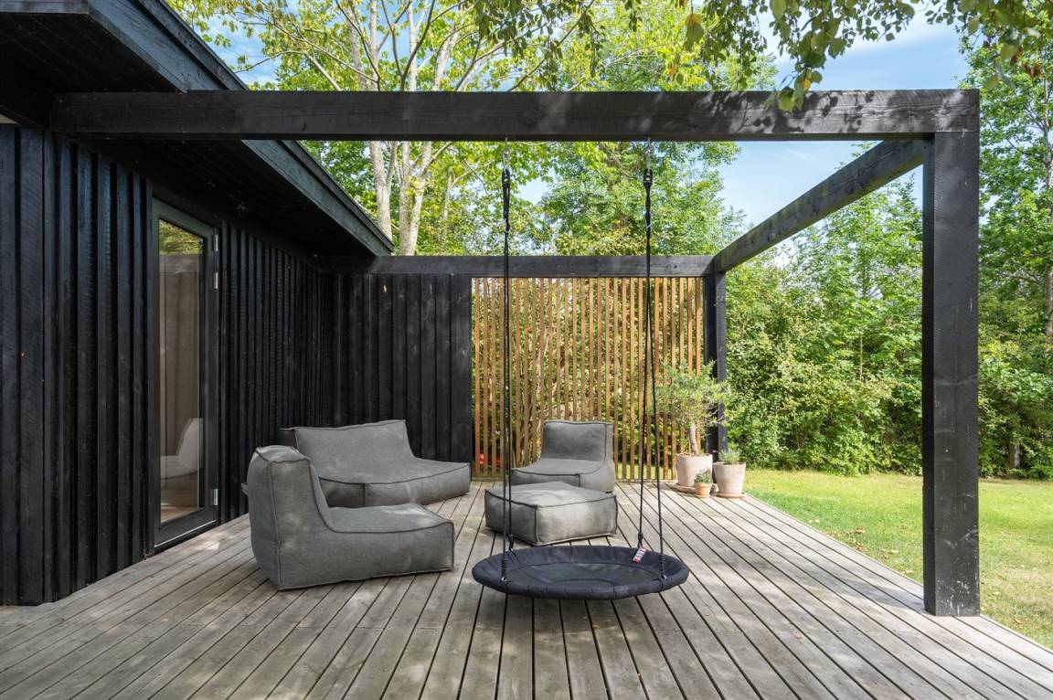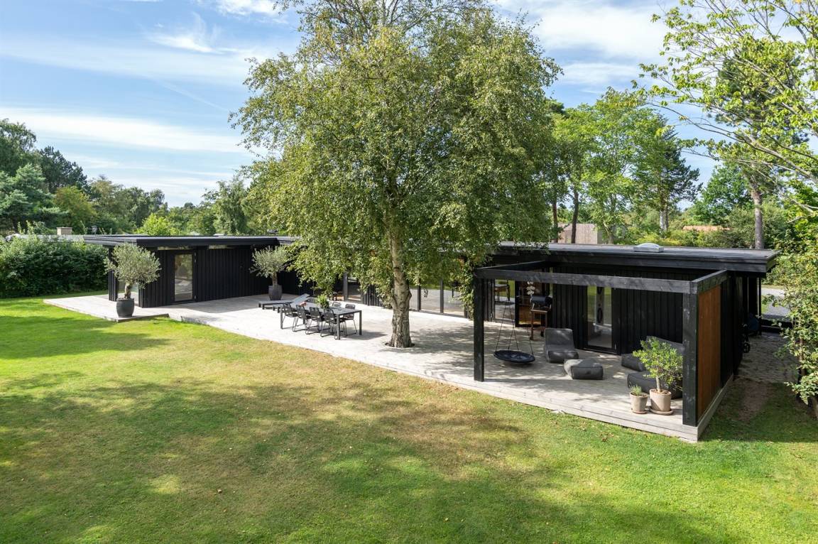 DraußenDie Ferienunterkunft liegt auf einem 1200 m² großen Gartengrundstück. Die Entfernung zum Meer beträgt 1000 m. Die Entfernung zu einem See beträgt 5500 m. Die nächste Einkaufsmöglichkeit liegt 1800 m entfernt. In einem Abstand von 9600 m gibt es einen Golfplatz. Es steht ein 130 m² Terrassenareal zur Verfügung. Schaukel. Trampolin.Lagerfeuerstelle. Pizzaofen. Außensauna. Cold water tub. Es steht ein Grill zur Verfügung. Es ist ein Ladestecker für Elektroautos installiert. Ladestecker Typ 2. Mit einer Ladeleistung von 11 kW. Parkplatz auf dem Grundstück.