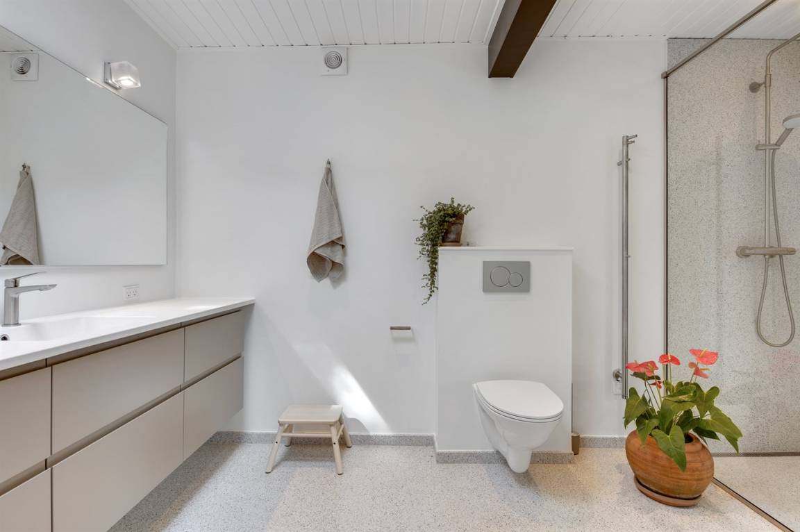 Es gibt drei schöne Schlafzimmer und ein tolles Badezimmer mit Dachfenster, Fußbodenheizung und Dusche.