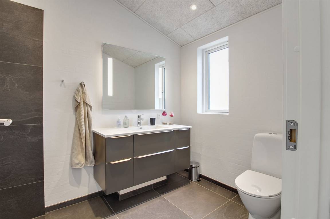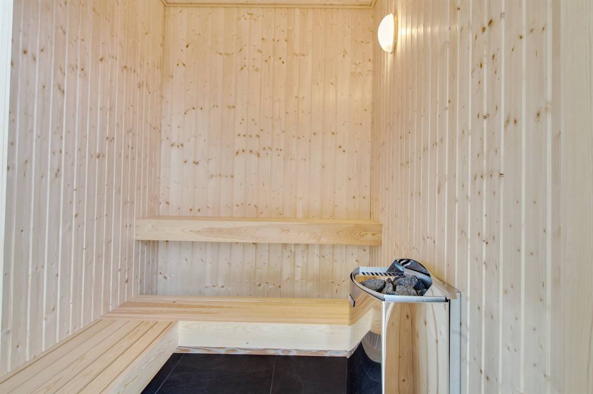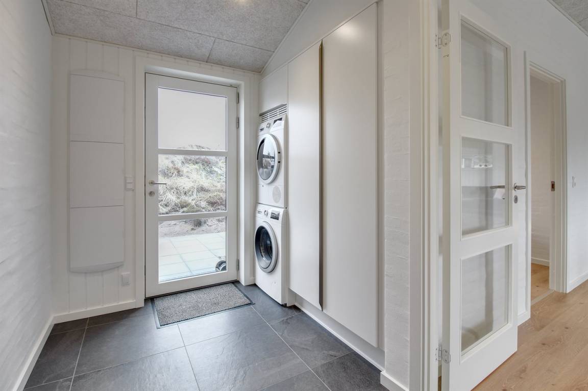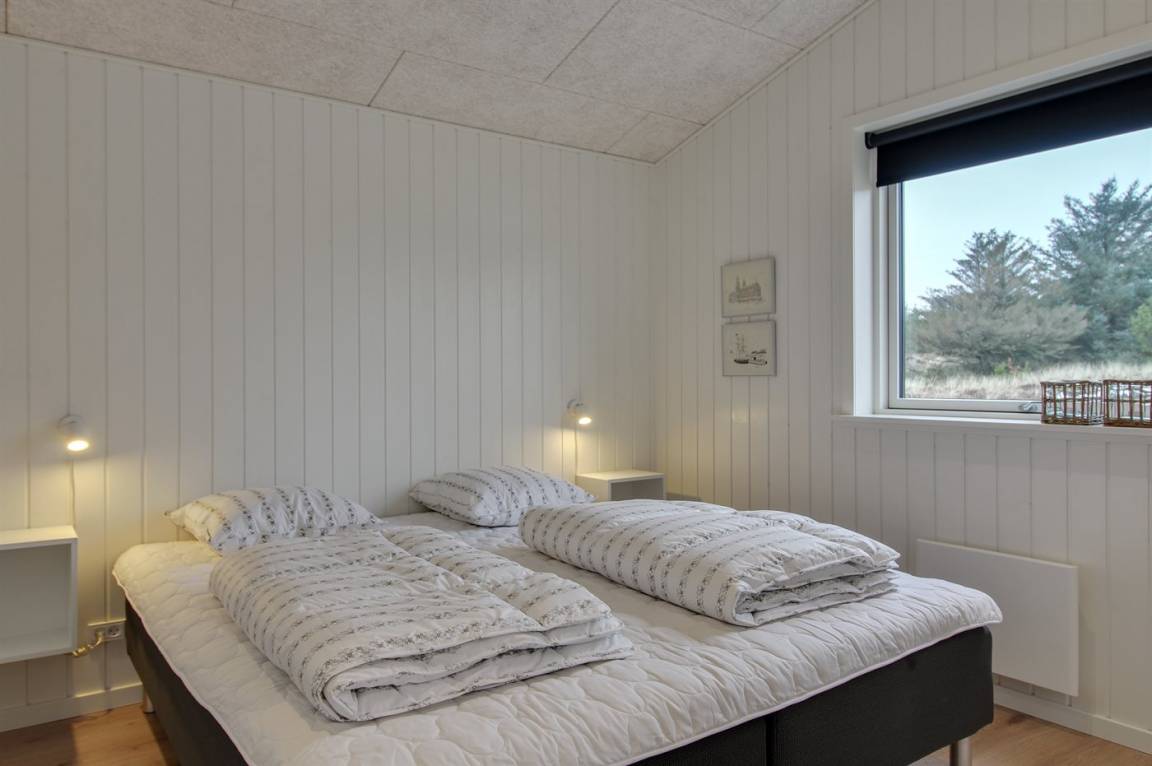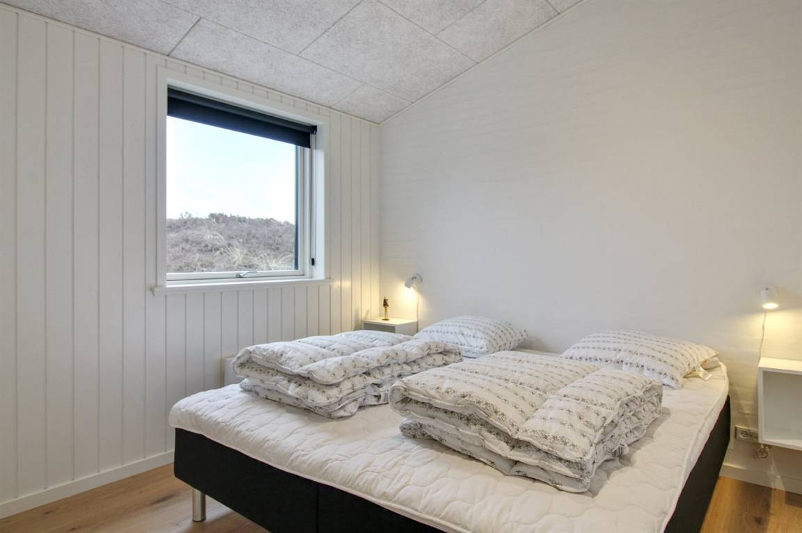 Ein schönes neues Ferienhaus aus Qualitätsmaterialien gebaut und mit einer geräumigen Einrichtung. Es stehen u. a. ein mit der Küche kombiniertes Wohnzimmer, 2 voll ausgestattete Badezimmer und eine schöne große Terrasse, zu der von mehreren Räumen des Hauses Zugang besteht, zur Verfügung. Außerdem ist eine Sauna vorhanden – hier erfolgt der Zugang von der überdachten Terrasse aus. Alles in allem ein schönes Ferienhaus für einen enspannenden Urlaub – nicht weit vom herrlichen Badestrand entfernt.