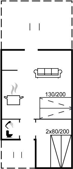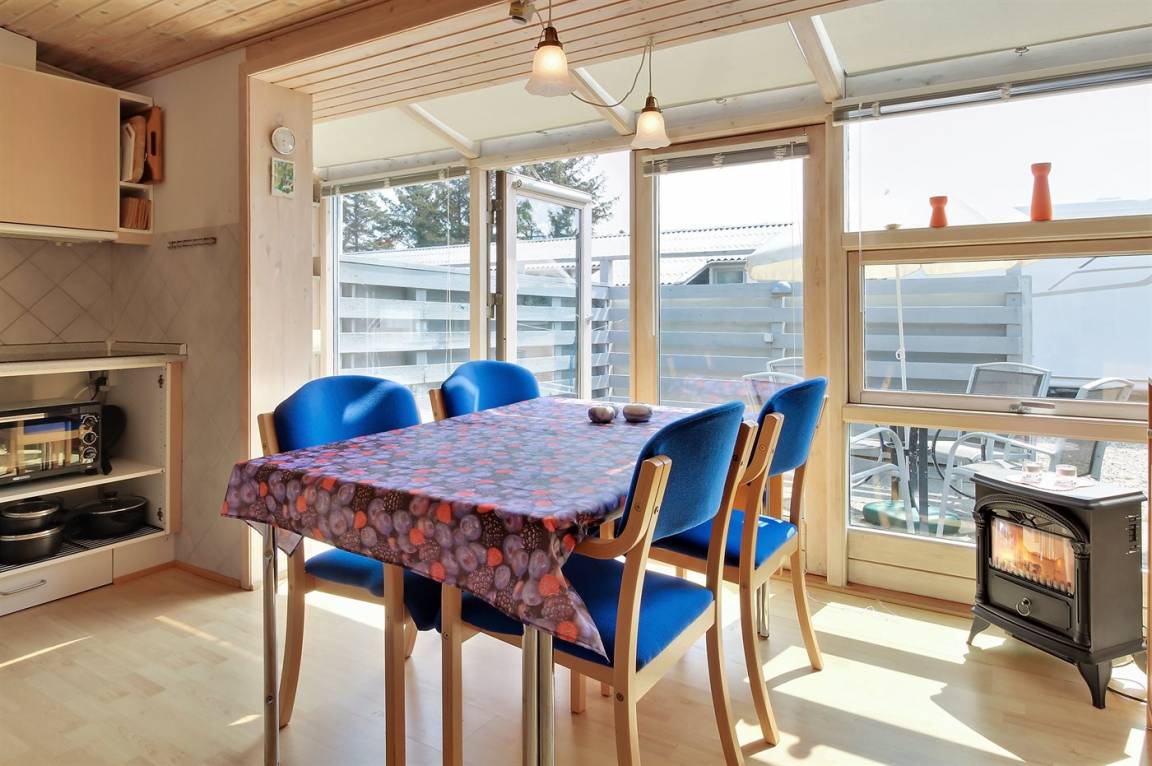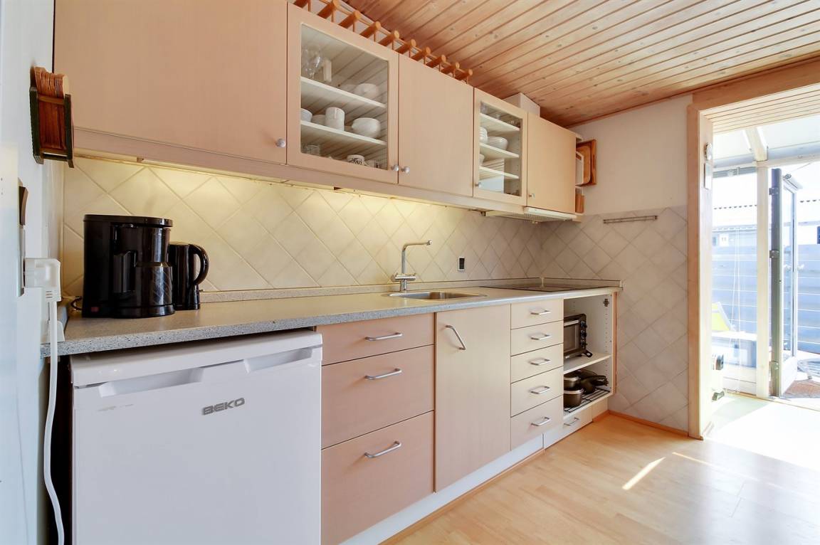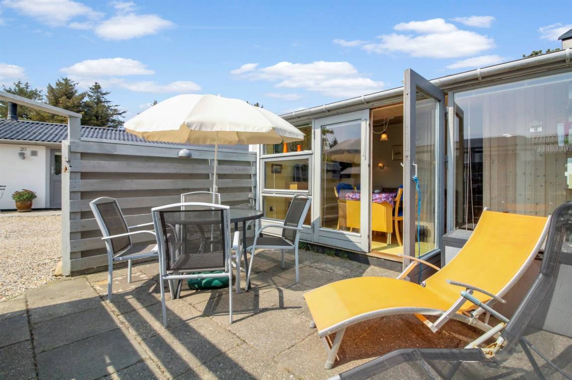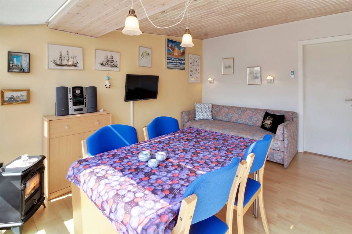 Schöne Wohnung für 2 Personen in der Nähe von Vejers Sydstrand. Das Wohnzimmer ist mit einem Schlafsofa für 2 Personen und Sesseln sowie einem Couchtisch ausgestattet. Außerdem gibt es eine kleine Essecke für 4 Personen, die Terrasse ist geschlossen.