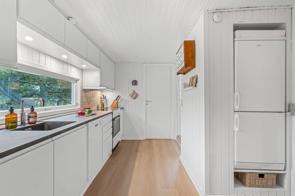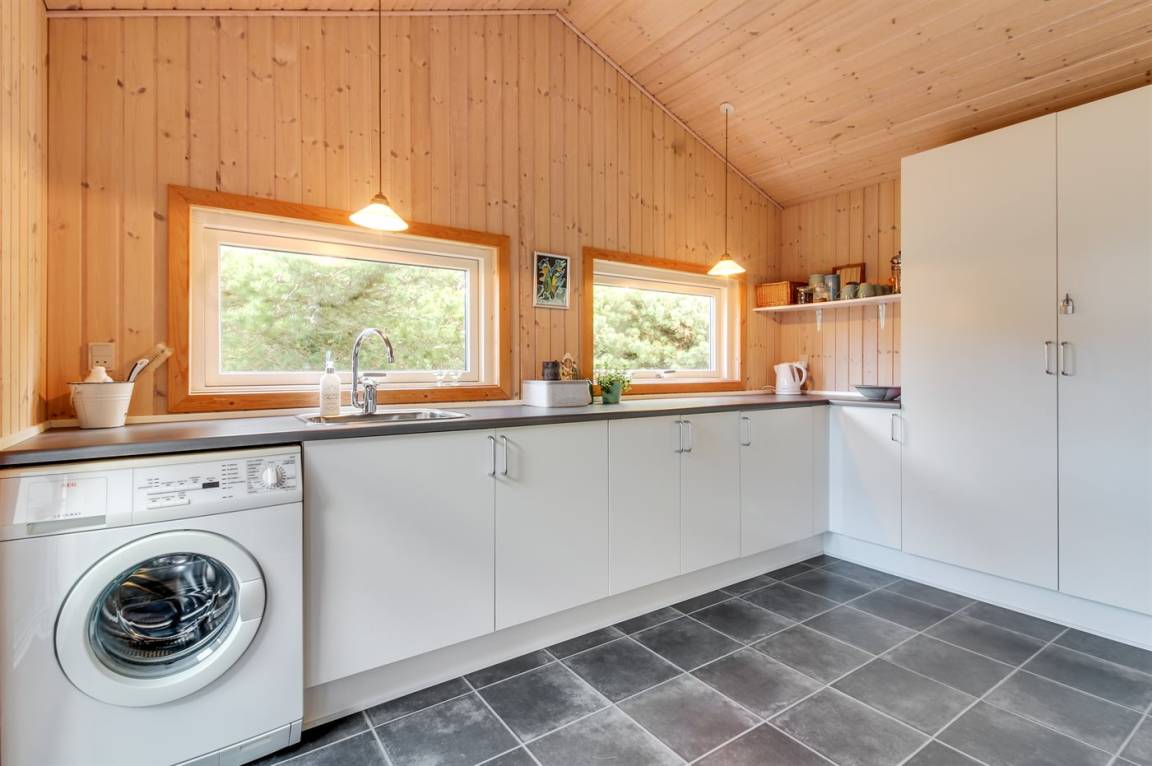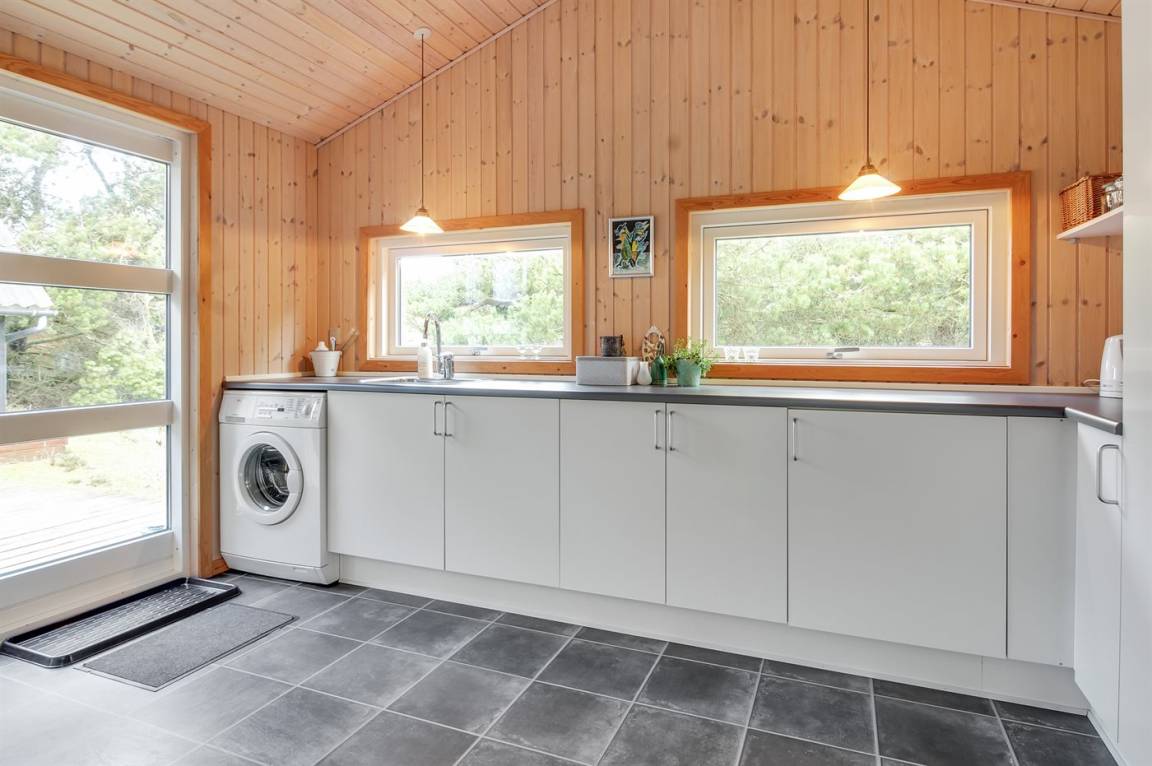 DraußenDie Ferienunterkunft liegt auf einem 1500 m² großen Naturgrundstück. Die Entfernung zum Meer beträgt 500 m. Die nächste Einkaufsmöglichkeit liegt 400 m entfernt. Es steht ein 34 m² Terrassenareal zur Verfügung. Geräteraum. Parkplatz auf dem Grundstück.