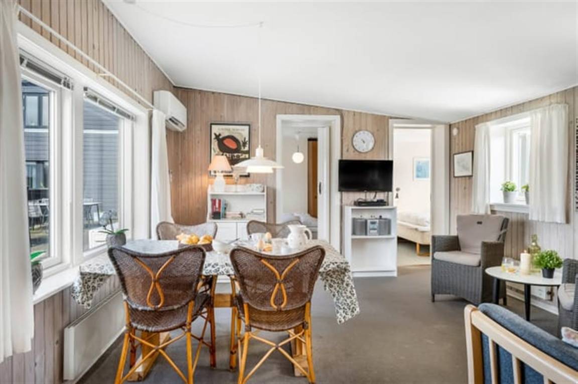 Zur Ausstattung gehören ein TV mit dänischen und deutschen Sendern sowie Internet. Die Wohnung ist Teil eines Gebäudes mit mehreren Ferienwohnungen und bietet Zugang zu Gemeinschaftsterrassen, einem Gemeinschaftsgrill sowie Spielgeräten – ideal für Familien mit Kindern, aber auch gemütlich für Paare, die das Leben im Freien in ruhiger Umgebung genießen möchten.