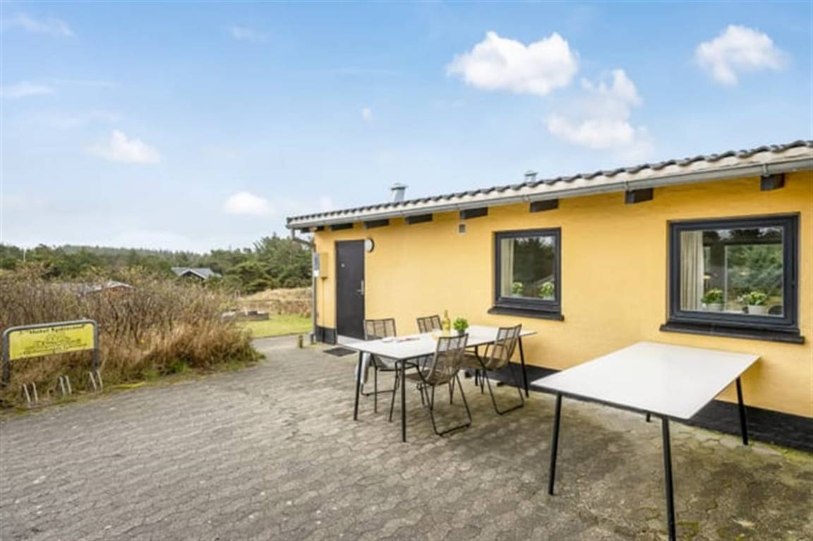 DraußenDie Ferienunterkunft liegt auf einem 300 m² großen Dünengrundstück. Die Entfernung zum Meer beträgt 300 m. Die nächste Einkaufsmöglichkeit liegt 1000 m entfernt. Es steht ein offenes Terrassenareal zur Verfügung. Sandkasten. Parkplatz auf dem Grundstück.
