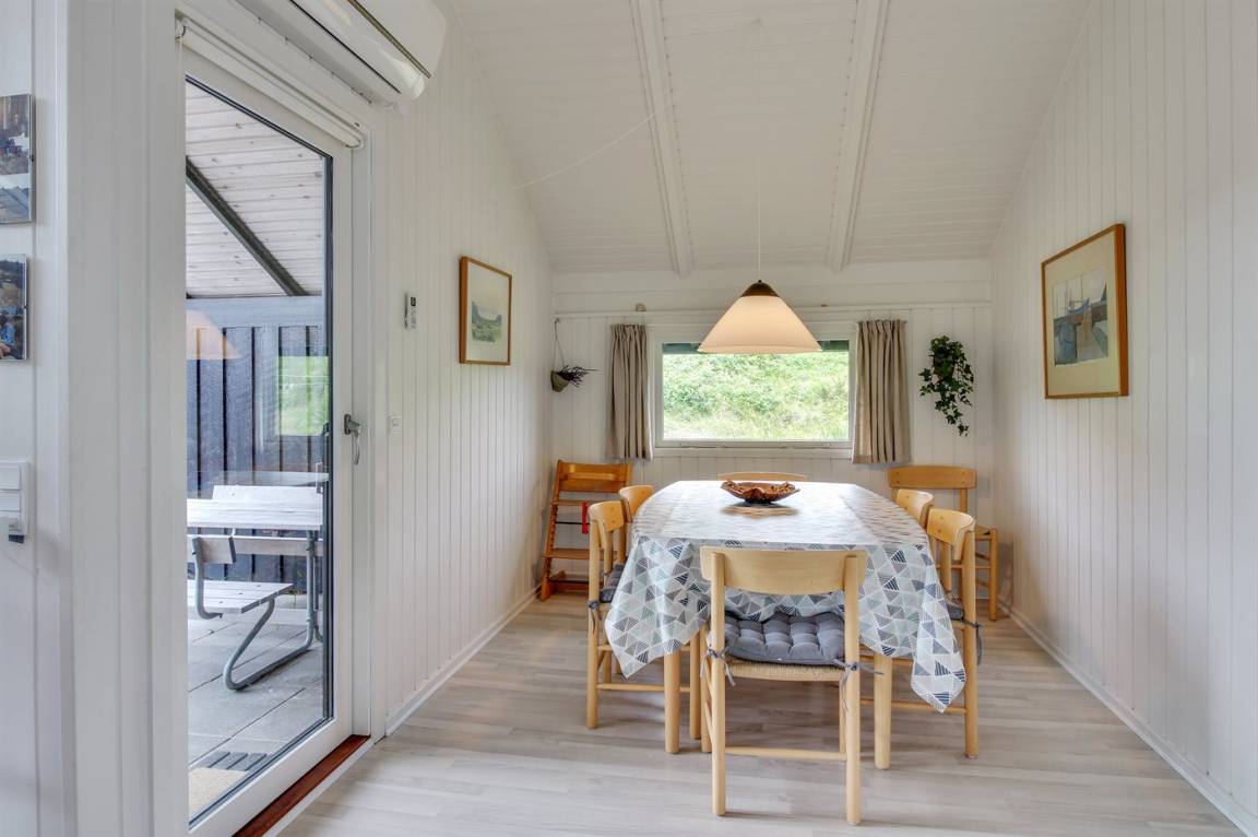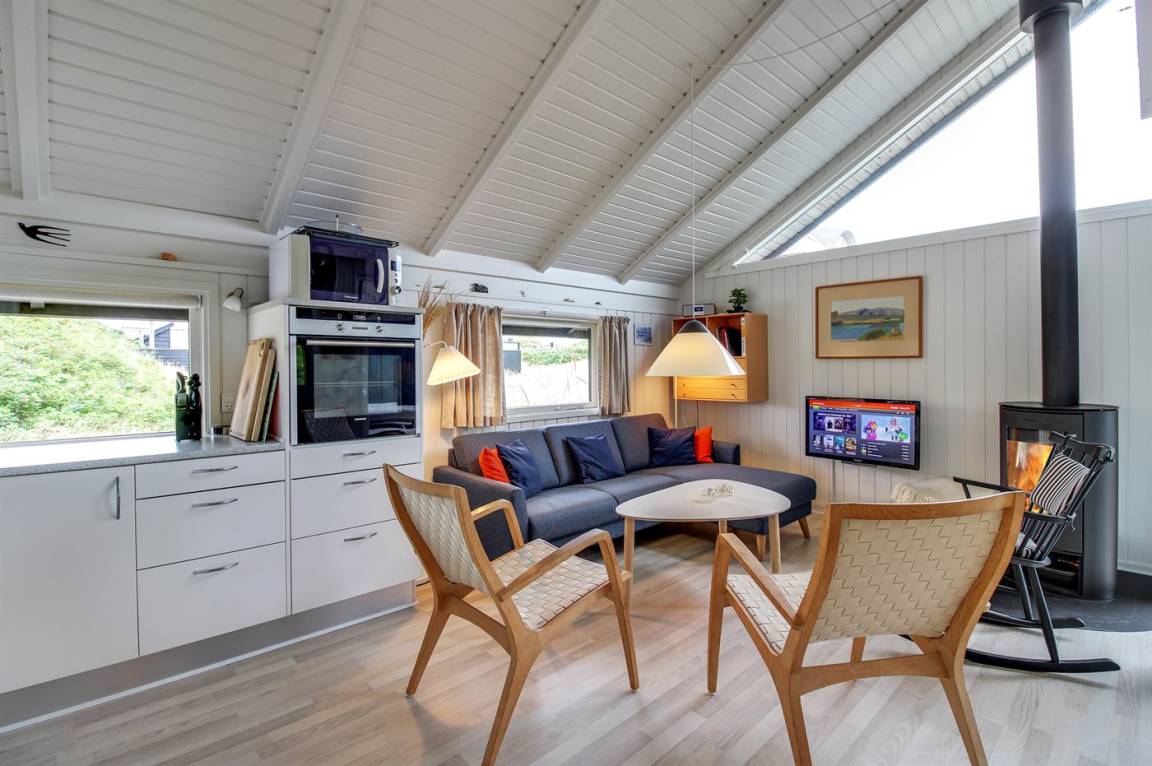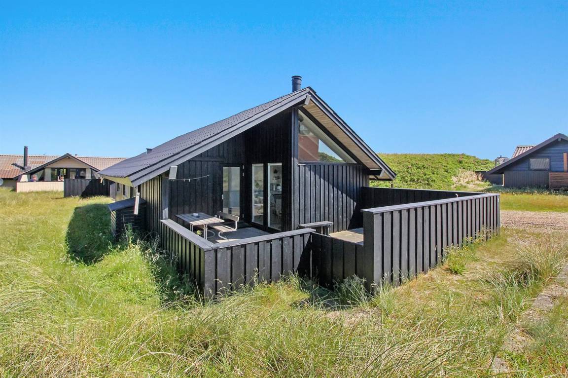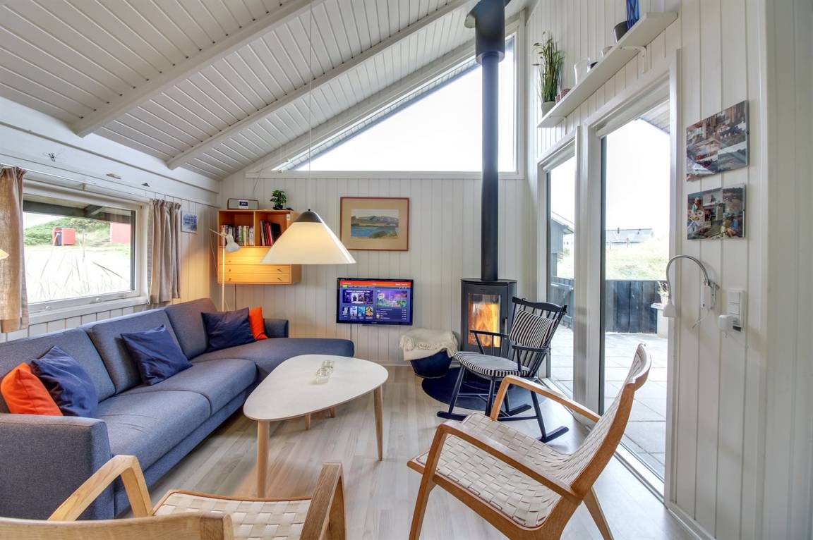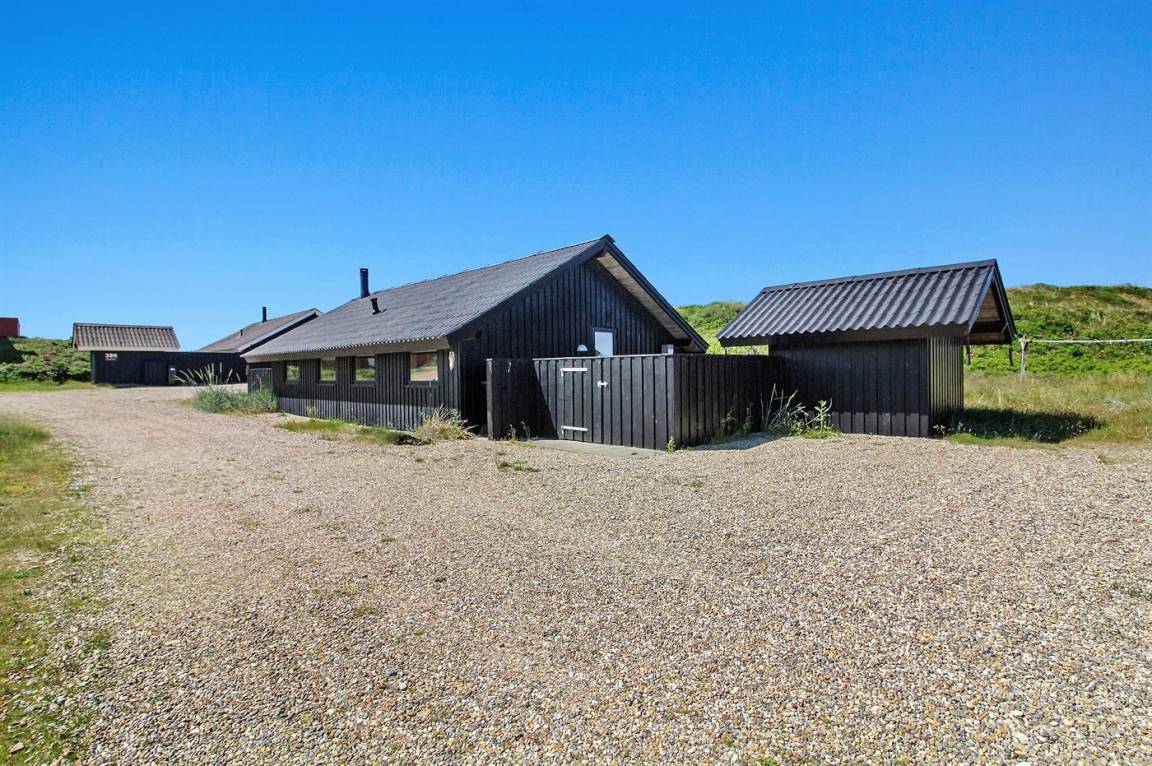 Dieses original dänische Ferienhaus liegt in erster Dünenreihe mit direktem Zugang zum Strand. Zum Haus gehört ein Anteil an ein insgesamt 15.000 m² großes und unter Naturschutz stehendes Dünengebiet, das sich bis zum Strand hinunter erstreckt. Das Haus ist einfach aber gemütlich eingerichet . Es gibt 3 Schlafzimmer; 1 mit Doppelbett und 2 mit je 2 Einzelbetten. In dem einen Zimmer können die Einzelbetten zu einem Doppelbett zusammengeschoben werden. Das Haus hat eine Wohnfläche von 69 m², ist 1975 gebaut und über die Jahre modernisiert/renoviert – letztens im Jahr 2016. Es steht ein Kaminofen zur Verfügung und es ist eine energiesparende Wärmepumpe installiert. Für die jüngsten Feriengäste gibt es Kinderbett und Kinderhochstuhl. Das Ferienhaus liegt auf einem 465 m² großen Naturgrundstück mit guten Terrassen. Gegen Süden liegt eine 29 m² große Terrasse – 10 m² sind überdacht. Außerdem gibt es eine gegen Norden und Westen gelegene, 22 m² große Terrasse. Die Entfernung zum Meer beträgt 200 m und die nächste Einkaufsmöglichkeit liegt 1300 m entfernt. Die Küche ist u. a. mit Geschirrspülmaschine, Mikrowelle, Backofen, Ceran-Kochfeld, Kühlschrank und Tiefkühlgerät mit einer Kapazität von 94 Liter ausgestattet. Badezimmer mit Fußbodenheizung und Duschnische. Außerdem stehen Fernseher mit mindestens 4 dänische und mindestens 4 deutsche Fernsehsender, Radio sowie kostenlose, kabellose Internetverbindung zur Verfügung. Es ist erlaubt 1 Haustier mitzubringen und Sie können direkt am Ferienhaus parken.