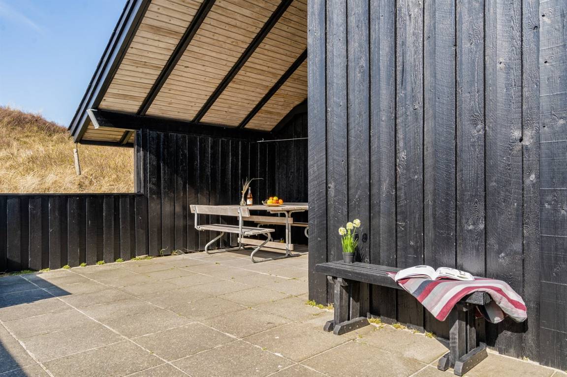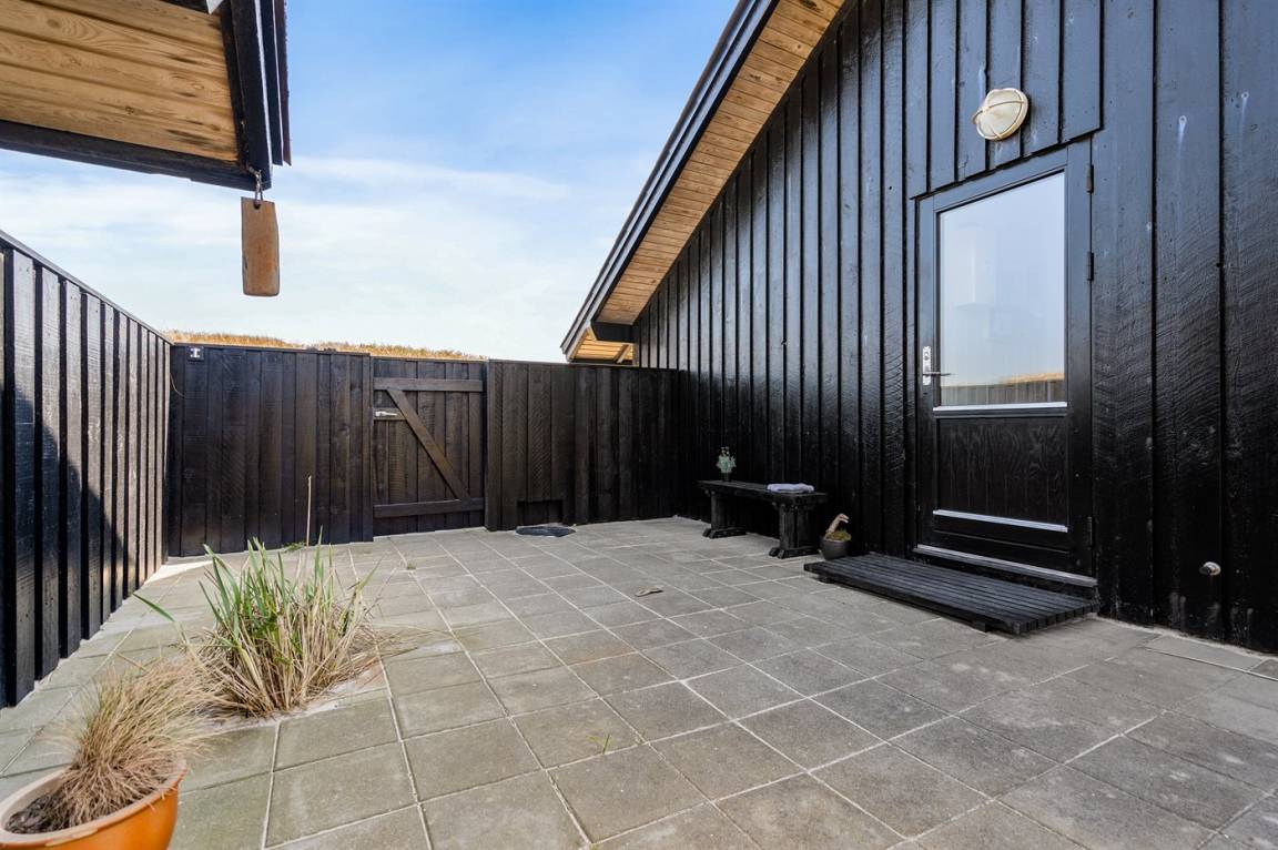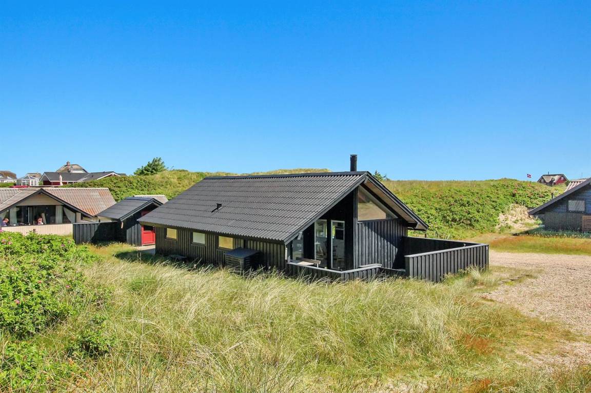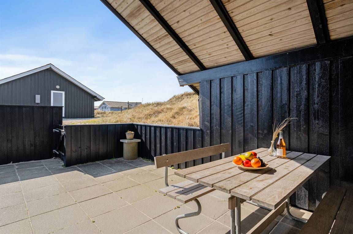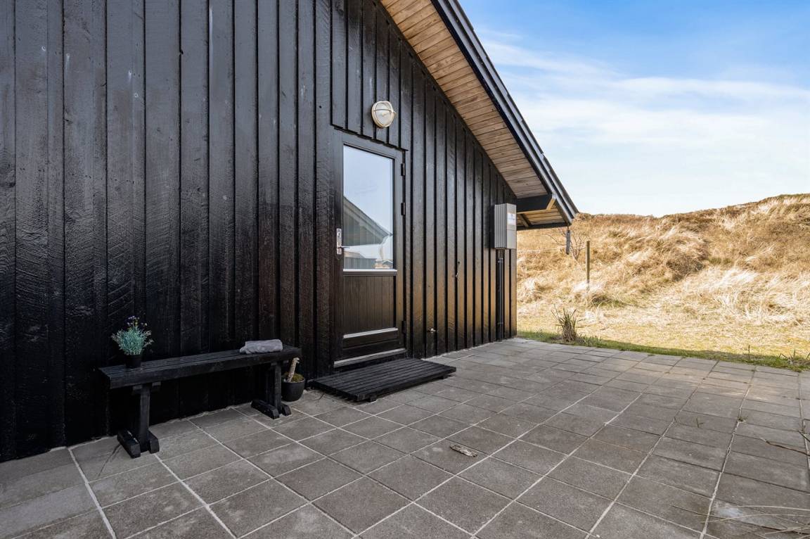 Dieses original dänische Ferienhaus liegt in erster Dünenreihe mit direktem Zugang zum Strand. Zum Haus gehört ein Anteil an ein insgesamt 15.000 m² großes und unter Naturschutz stehendes Dünengebiet, das sich bis zum Strand hinunter erstreckt. Das Haus ist einfach aber gemütlich eingerichet . Es gibt 3 Schlafzimmer; 1 mit Doppelbett und 2 mit je 2 Einzelbetten. In dem einen Zimmer können die Einzelbetten zu einem Doppelbett zusammengeschoben werden. Das Haus hat eine Wohnfläche von 69 m², ist 1975 gebaut und über die Jahre modernisiert/renoviert – letztens im Jahr 2016. Es steht ein Kaminofen zur Verfügung und es ist eine energiesparende Wärmepumpe installiert. Für die jüngsten Feriengäste gibt es Kinderbett und Kinderhochstuhl. Das Ferienhaus liegt auf einem 465 m² großen Naturgrundstück mit guten Terrassen. Gegen Süden liegt eine 29 m² große Terrasse – 10 m² sind überdacht. Außerdem gibt es eine gegen Norden und Westen gelegene, 22 m² große Terrasse. Die Entfernung zum Meer beträgt 200 m und die nächste Einkaufsmöglichkeit liegt 1300 m entfernt. Die Küche ist u. a. mit Geschirrspülmaschine, Mikrowelle, Backofen, Ceran-Kochfeld, Kühlschrank und Tiefkühlgerät mit einer Kapazität von 94 Liter ausgestattet. Badezimmer mit Fußbodenheizung und Duschnische. Außerdem stehen Fernseher mit mindestens 4 dänische und mindestens 4 deutsche Fernsehsender, Radio sowie kostenlose, kabellose Internetverbindung zur Verfügung. Es ist erlaubt 1 Haustier mitzubringen und Sie können direkt am Ferienhaus parken.