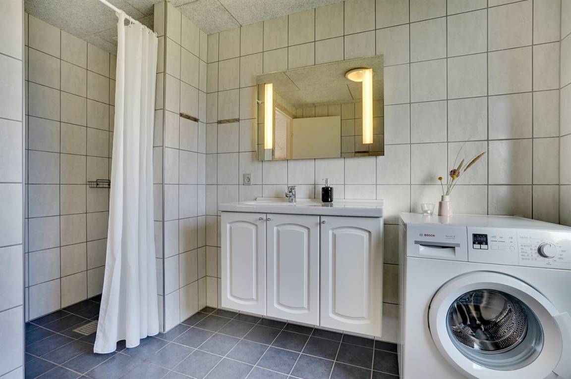 Dieses geräumige Ferienhaus liegt auf einem schönen Naturgrundstück mit Platz für Ballspiele und andere Aktivitäten im Freien. Es steht eine Außenspüle zur Verfügung und das Tiefkühlgerät steht im Geräteraum.