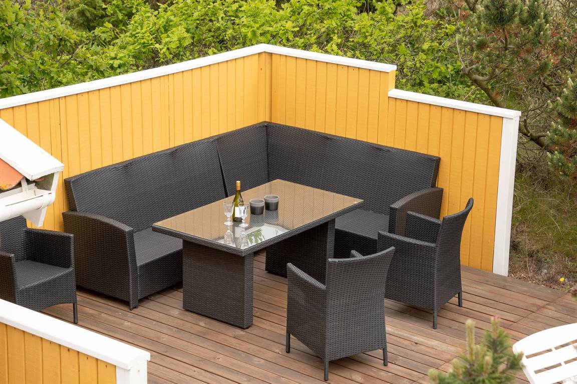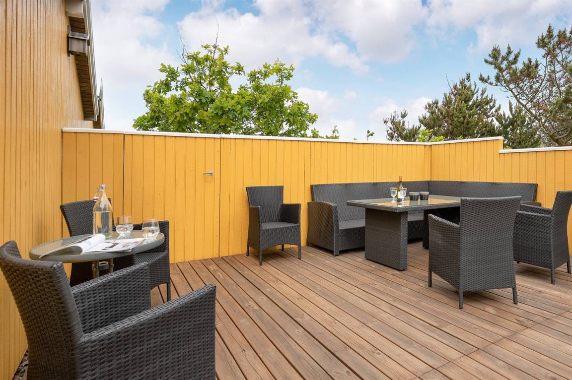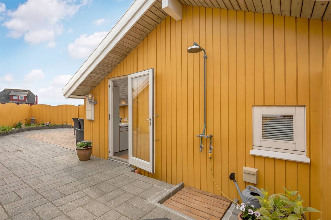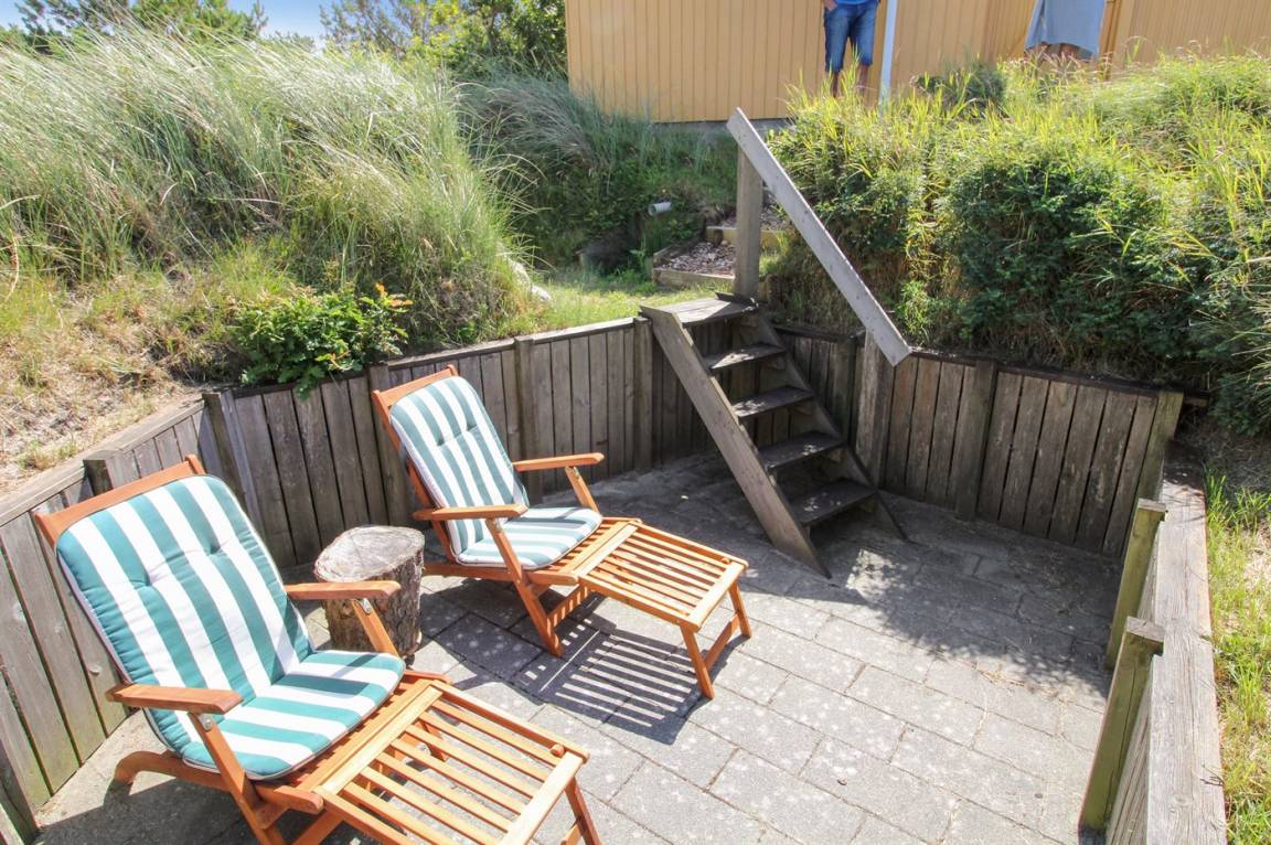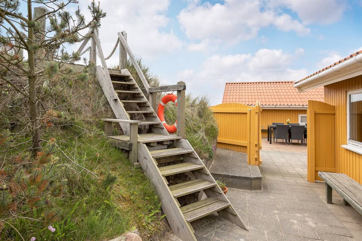 Draußen erwartet dich eine 128 m² große, komplett geschlossene Terrasse/Innenhof mit Gartenmöbeln und einem Gasgrill. Zusätzlich gibt es eine schöne 30 m² große Sonnenterrasse hinter dem Haus mit Gartenmöbeln und Liegestühlen. Vor dem Haus befindet sich eine besonders schöne Abendterrasse mit Tisch und Stühlen, von der aus du den Sonnenuntergang über den Dünen genießen kannst. Auf der linken Seite des Hauses gibt es eine weitere windgeschützte Sitzecke, die in die Dünen eingebettet ist – perfekt, um die Ruhe und Natur zu genießen. Auf einem Hügel des Grundstücks gibt es zudem einen Aussichtspunkt mit einem fantastischen Blick über die Dünen und hin zum Meer.