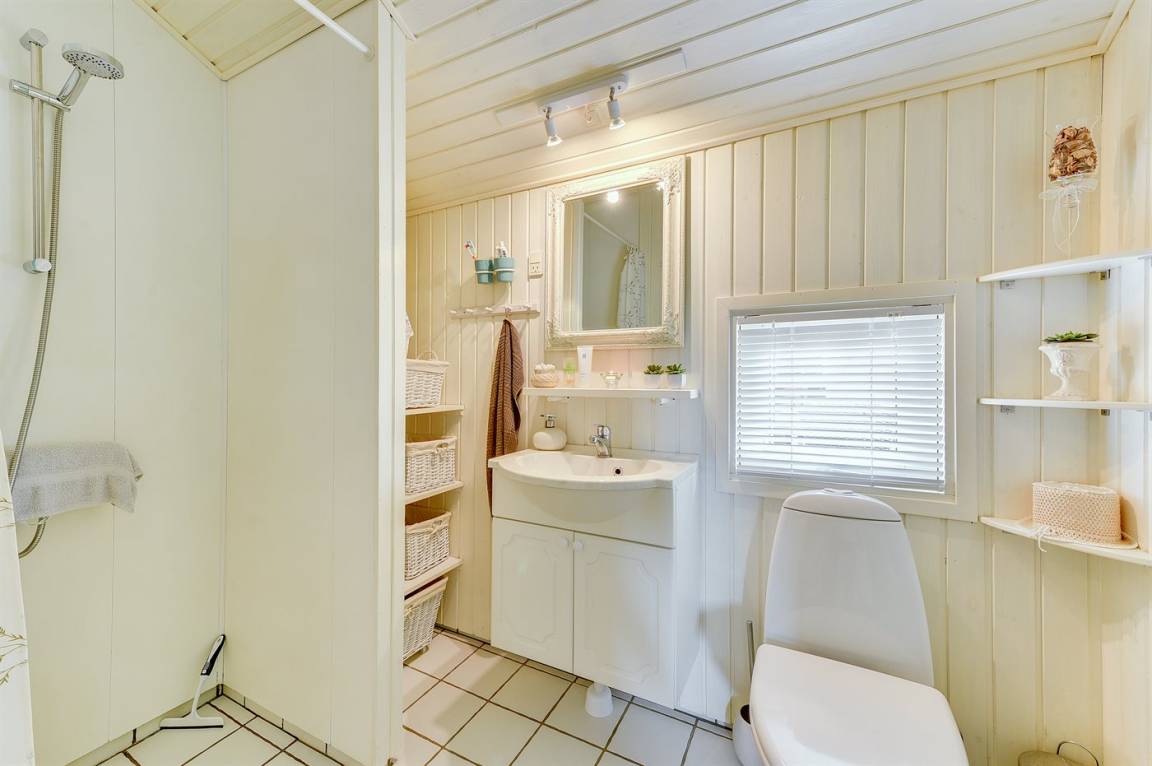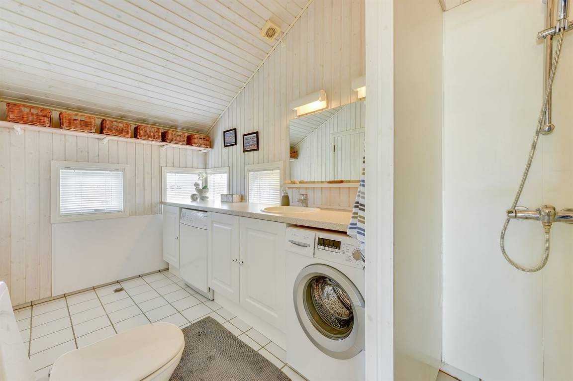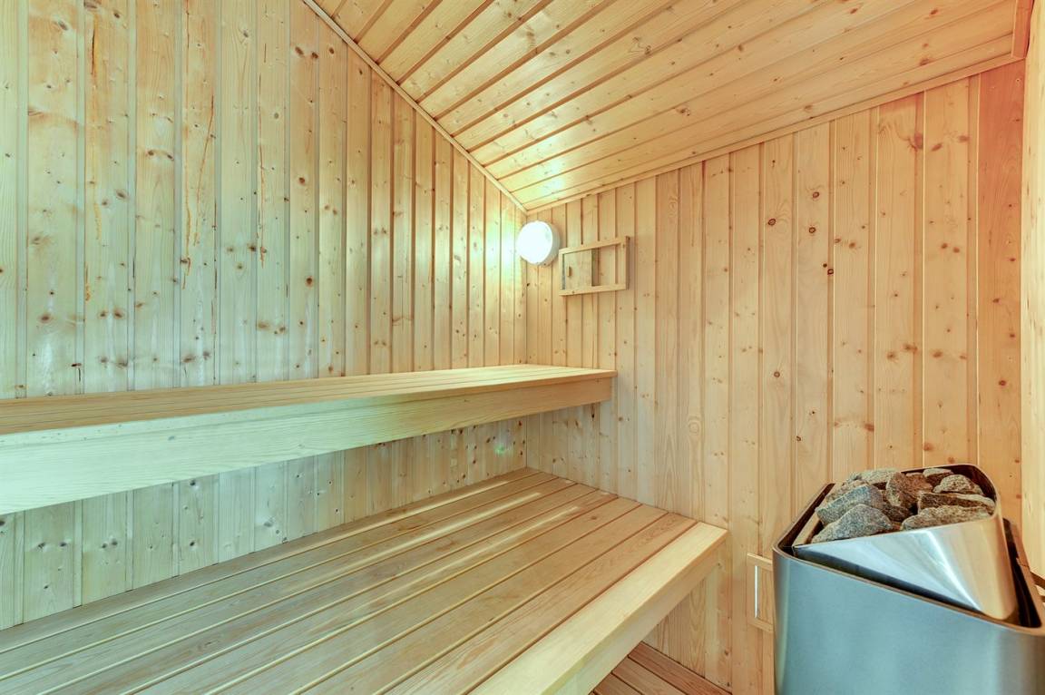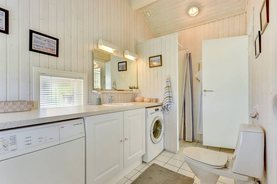 Es gibt zwei Badezimmer, beide mit Duschnische, Waschbecken und Toilette. Eines der Badezimmer verfügt zusätzlich über Fußbodenheizung, Zugang zur Sauna, Waschmaschine, Wäschetrockner und eine Wickeltisch. Insgesamt gibt es vier Schlafzimmer: 4 Schlafplätze in Doppelbetten und 4 Schlafplätze in Einzelbetten