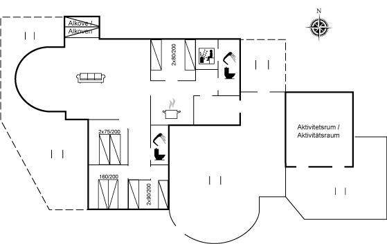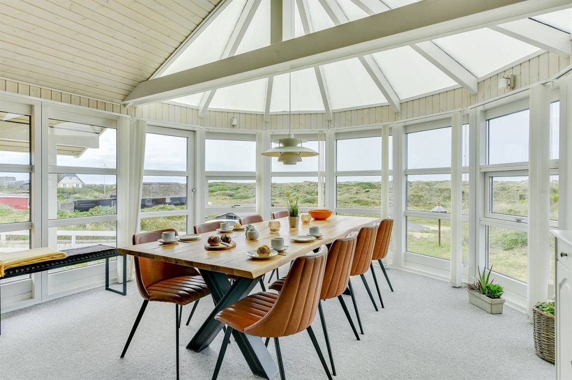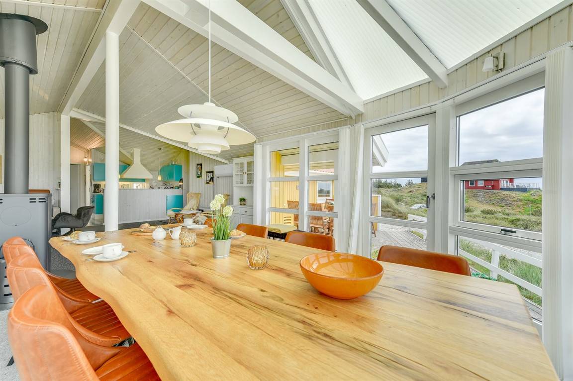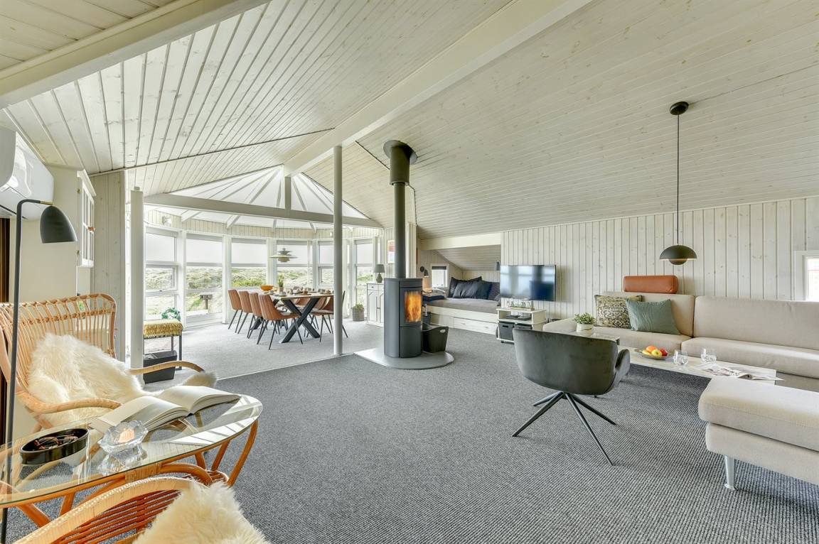 Das Haus wurde 1993 gebaut und 2005 renoviert. Es verfügt über ein großes, helles Wohnzimmer mit TV-Sesseln, eine energiesparende Wärmepumpe, einen zentral platzierten Kaminofen, Teppichböden, einen Alkoven sowie einen gemütlichen Wintergarten, der als Essbereich eingerichtet ist. Von hier hast du eine fantastische Aussicht über die Dünenlandschaft. Zur Ausstattung gehören ein Fernseher mit DVD-Player, kostenloses Internet sowie Musikstreaming über Bluetooth-Lautsprecher.