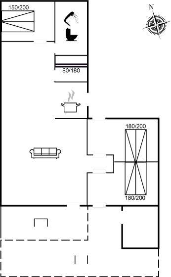 DraußenDie Ferienunterkunft liegt auf einem 1700 m² großen Naturgrundstück. Die Entfernung zum Meer beträgt 1300 m. Die nächste Einkaufsmöglichkeit liegt 500 m entfernt. Es steht ein 22 m² Terrassenareal zur Verfügung. Außerdem gibt es 10 m² überdachte Terrasse. Schaukel. Sandkasten. Parkplatz auf dem Grundstück.