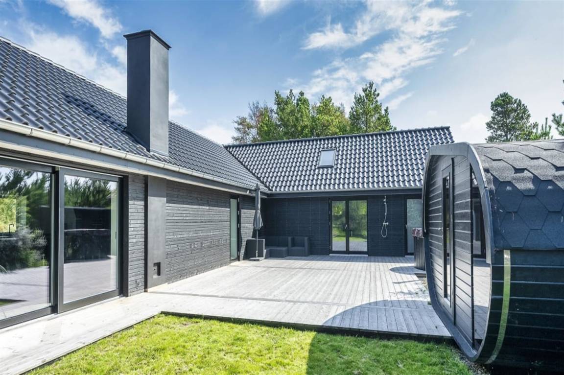 DraußenDie Ferienunterkunft liegt auf einem 1800 m² großen Gartengrundstück. Die Entfernung zum Meer beträgt 1200 m. Die nächste Einkaufsmöglichkeit liegt 600 m entfernt. Es steht ein offenes Terrassenareal zur Verfügung. Außerdem gibt es überdachte Terrasse. Sandkasten. Spielturm.Lagerfeuerstelle. Außensauna. Außendusche. Es steht ein Grill zur Verfügung. Es ist ein Ladestecker für Elektroautos installiert. Ladestecker Typ 2. Mit einer Ladeleistung von 11 kW. Parkplatz auf dem Grundstück.