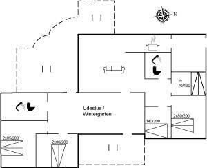 DraußenDie Ferienunterkunft liegt auf einem 2907 m² großen Naturgrundstück. Die Entfernung zum Meer beträgt 1000 m. Die nächste Einkaufsmöglichkeit liegt 500 m entfernt. Es steht ein 60 m² Terrassenareal zur Verfügung. Zutritt zu einem beheizbaren Wintergarten. Schaukel. Sandkasten. Fußballtor. Parkplatz auf dem Grundstück.