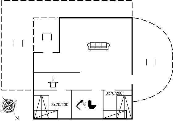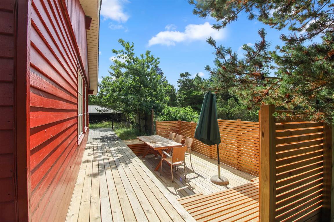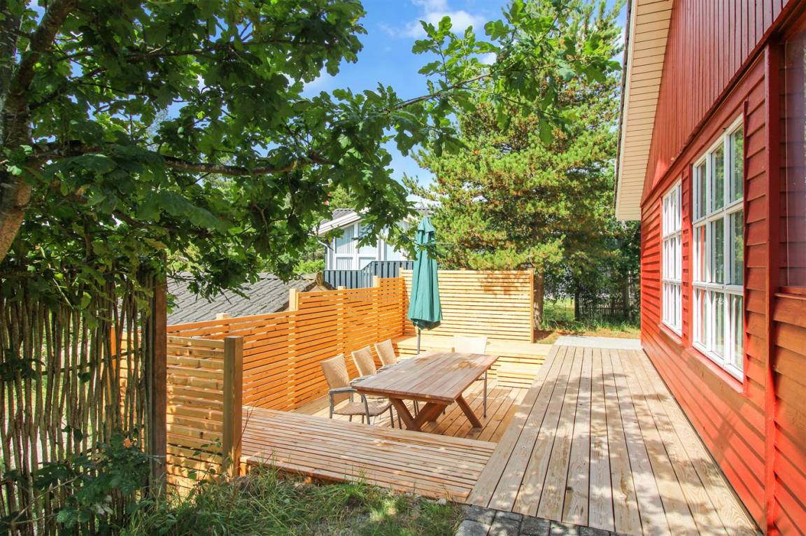 DraußenDie Ferienunterkunft liegt auf einem 640 m² großen Naturgrundstück. Die Entfernung zum Meer beträgt 600 m. Die nächste Einkaufsmöglichkeit liegt 500 m entfernt. Es steht ein 50 m² Terrassenareal zur Verfügung. Außerdem gibt es 10 m² überdachte Terrasse. Windschutzhütte.