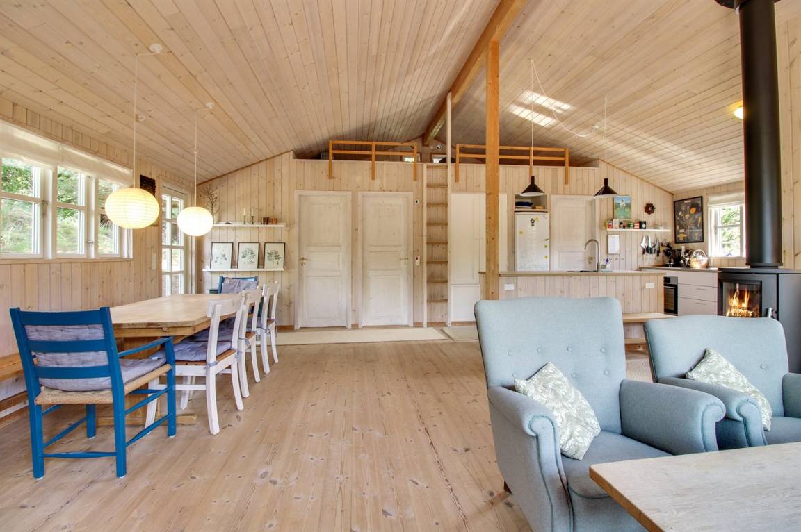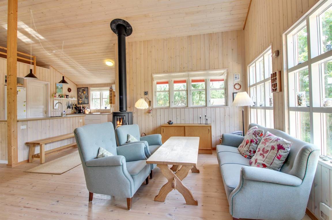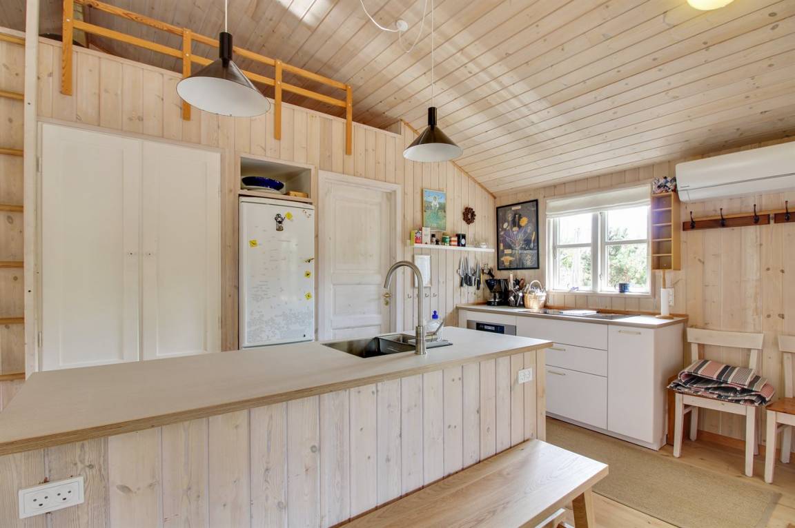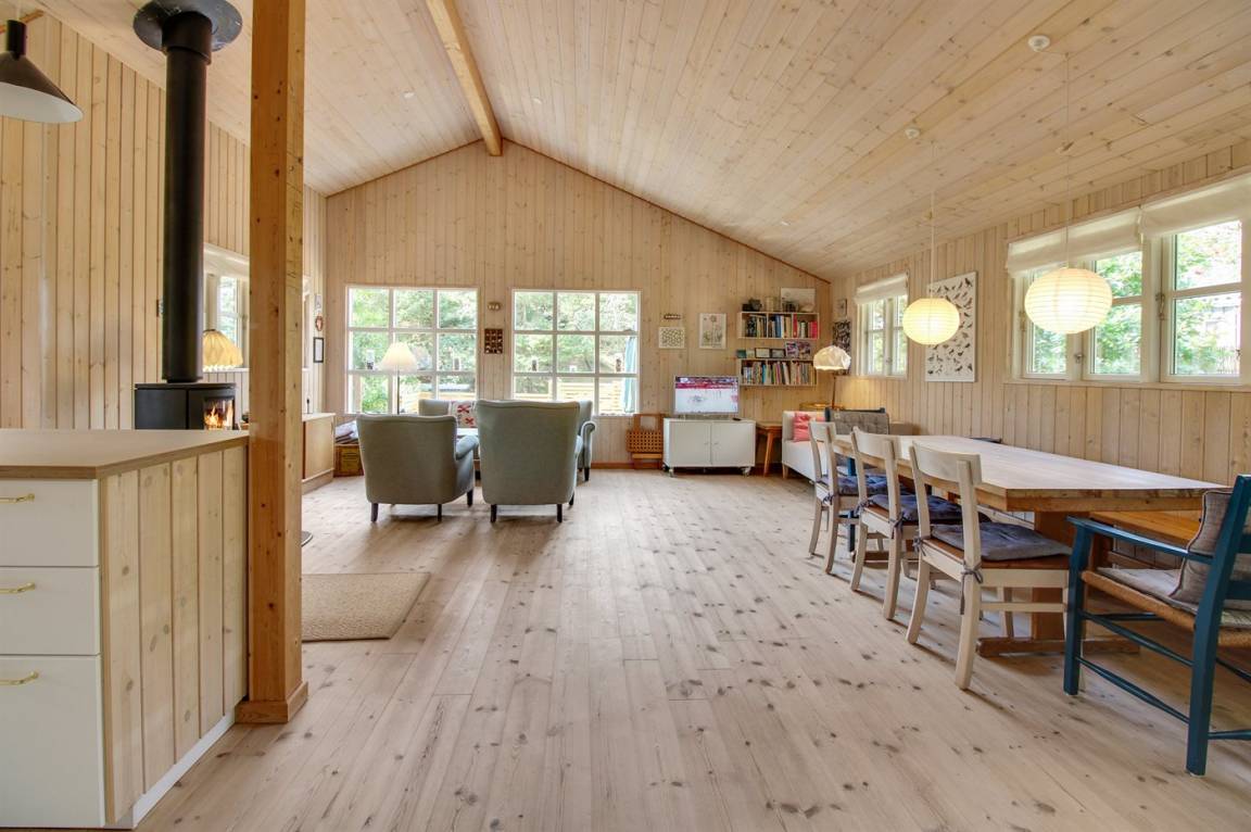 Ein schönes Ferienhaus aus Holz. Zum Haus gehört eine neue, große Terrasse mit Loungemöbeln. Tannen schirmen das Haus von der Straße ab und es gibt Parkplätze für 2 Autos. Das Haus ist mit einem offenen Obergeschoss mit 2 Schlafplätzen eingerichtet.