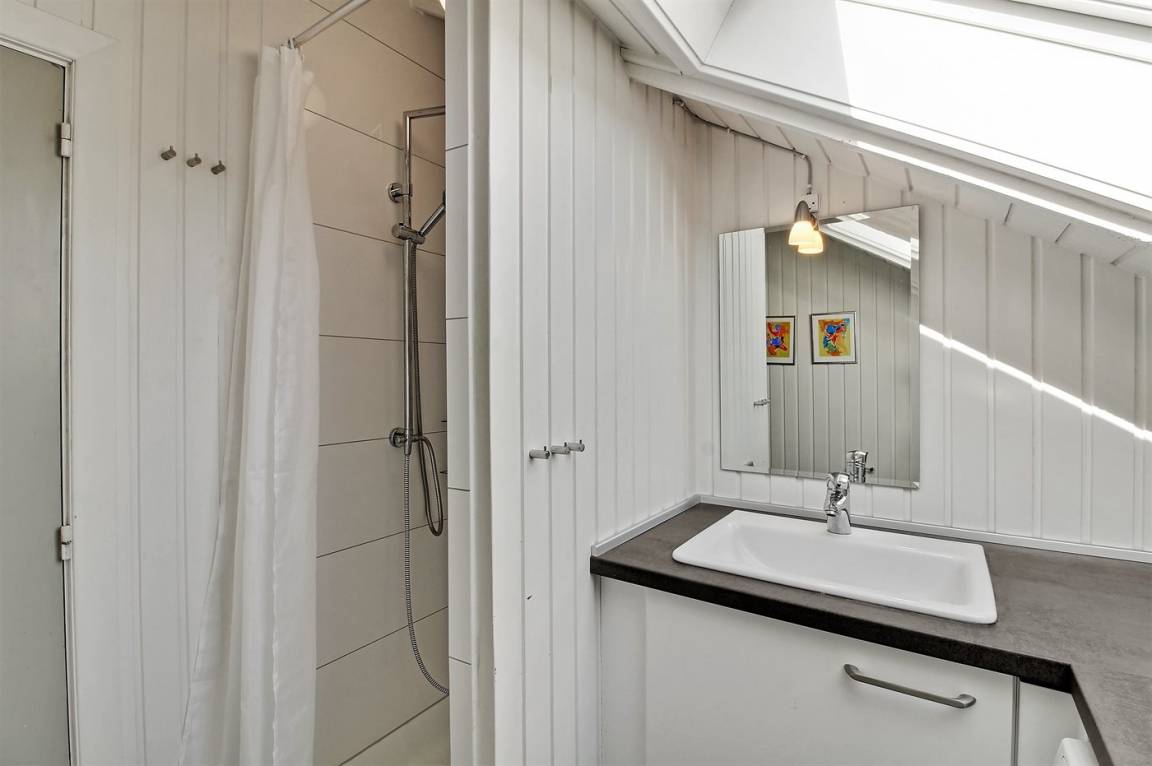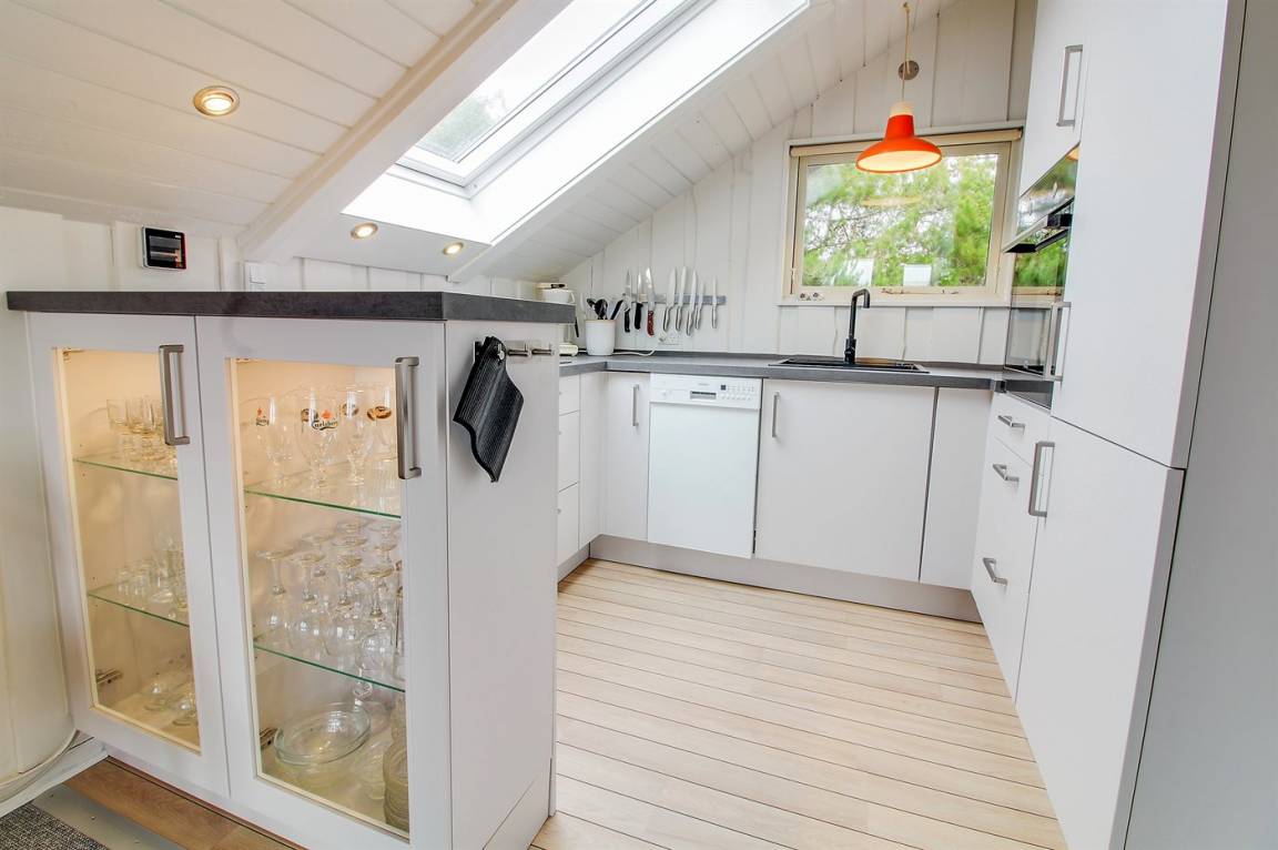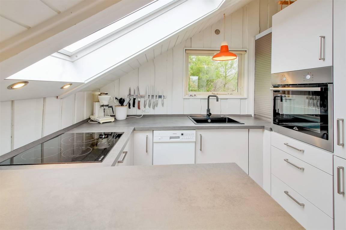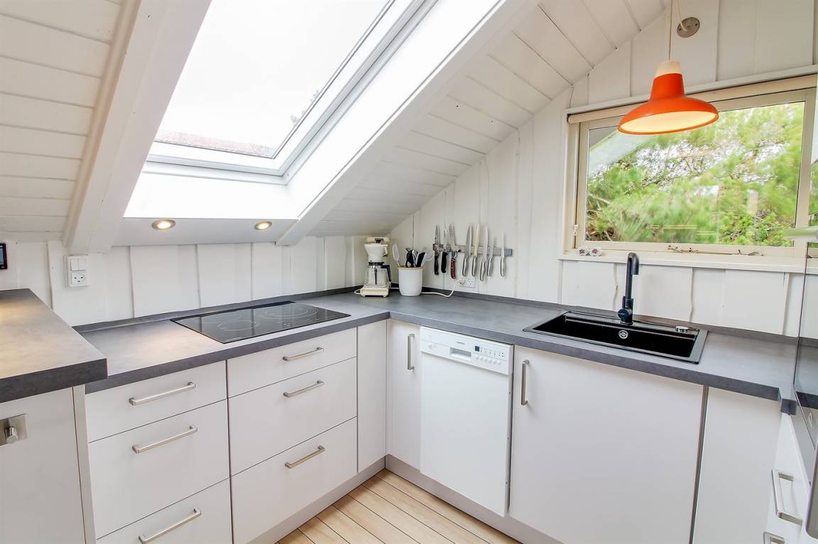 „The vacation at the holiday home: Die Küche ist sehr gut ausgestattet. Und war bei Anreise sehr sauber. Ebenso das Badezimmer. Leider fehlt an beiden Schrägenfenstern (Küche und Bad) ein Sonnenschutz so dass die Sonne ziemlich stark belendete“
