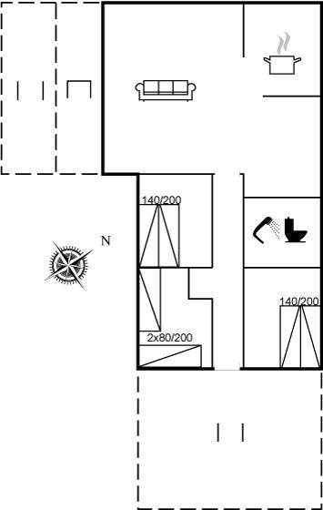 DraußenDie Ferienunterkunft liegt auf einem 500 m² großen Naturgrundstück. Die Entfernung zum Meer beträgt 200 m. Die nächste Einkaufsmöglichkeit liegt 75 m entfernt. Es stehen 75 m² offene sowie 10 m² überdachte Terrasse zur Verfügung. Davon sind insgesamt 85 m² geschlossen. Parkplatz auf dem Grundstück.
