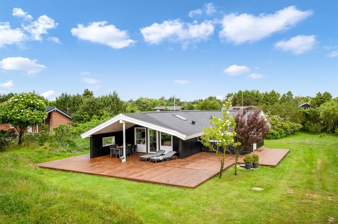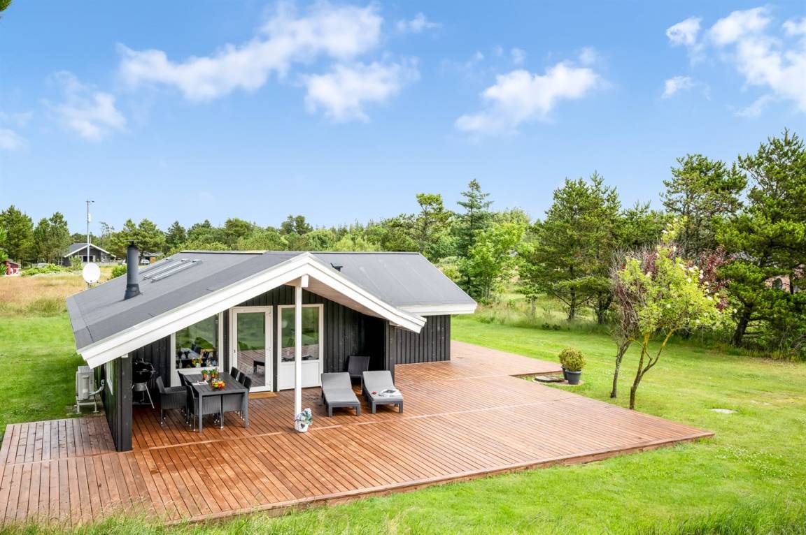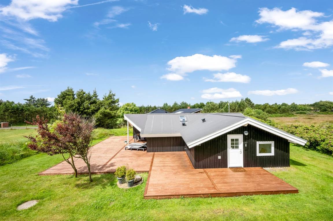 Das gepflegte Ferienhaus liegt auf einem großen und ungestörten Grundstück in Vejers, wo die Tiere, die frei in der Natur leben, oft vorbeischauen.