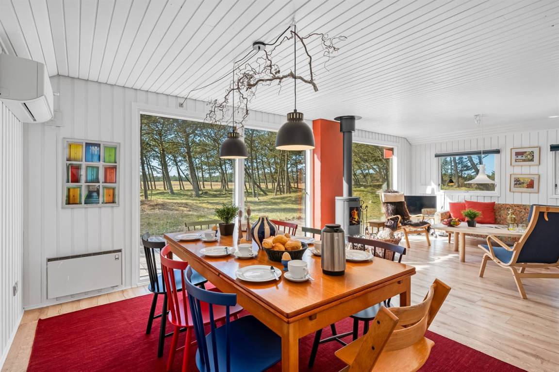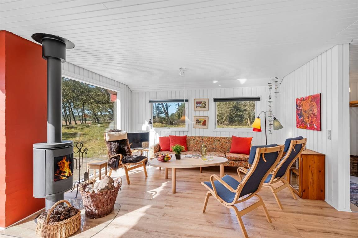 Das Ferienhaus ist 102 m² groß. Es wurde 1978 gebaut und eine gründliche Renovierung wurde 2017 abgeschlossen, wo das Wohnzimmer unter anderem erweitert wurde. Das Ferienhaus liegt auf einem 2018 m² großen Naturgrundstück. Es sind 1500 m zum Meer. Das nächste Geschäft befindet sich in einer Entfernung von 300 m. Parkplatz am Ferienhaus. Es gibt insgesamt 3 Schlafzimmer mit Einbauschränken; 2 mit Doppelbetten und 1 mit 2 Einzelbetten, hiervon 1 mit elektrischem Lattenrost. Die Küche ist u. a. mit Kühl-/Gefrierschrank, Induktionskochfeld mit 4 Kochplatten, Umluftofen, Mikrowelle und Geschirrspüler ausgestattet. Es gibt 1 Badezimmer mit Dusche. Entspannen Sie sich in der Sauna. Im Ferienhaus befindet sich Wärmepumpe, Internet, Smart TV, Kaminofen und Waschmaschine. Auf dem Grundstück steht eine Windschutzhütte sowie Außendusche zur Verfügung.