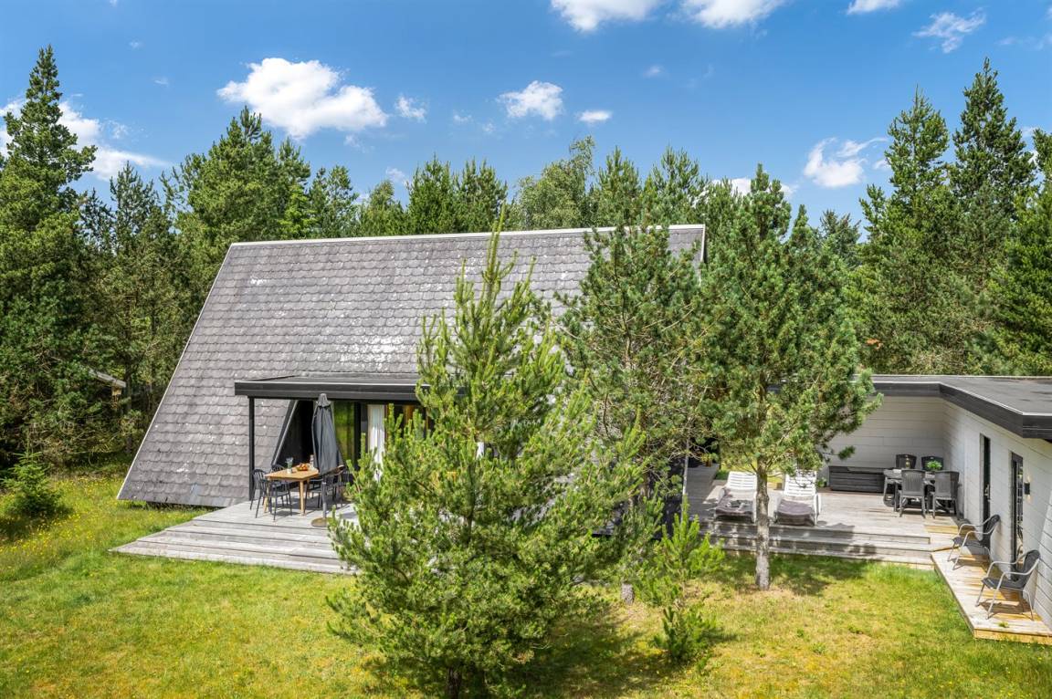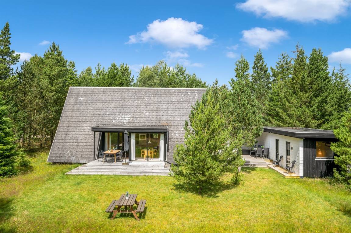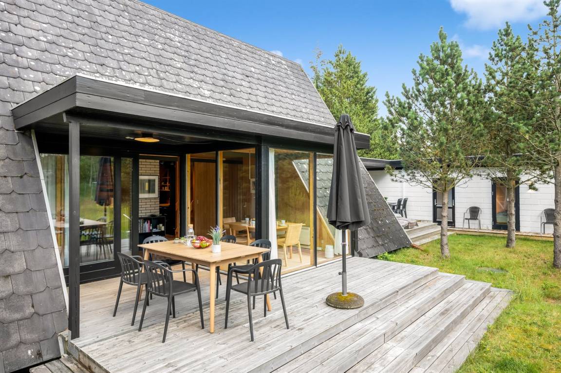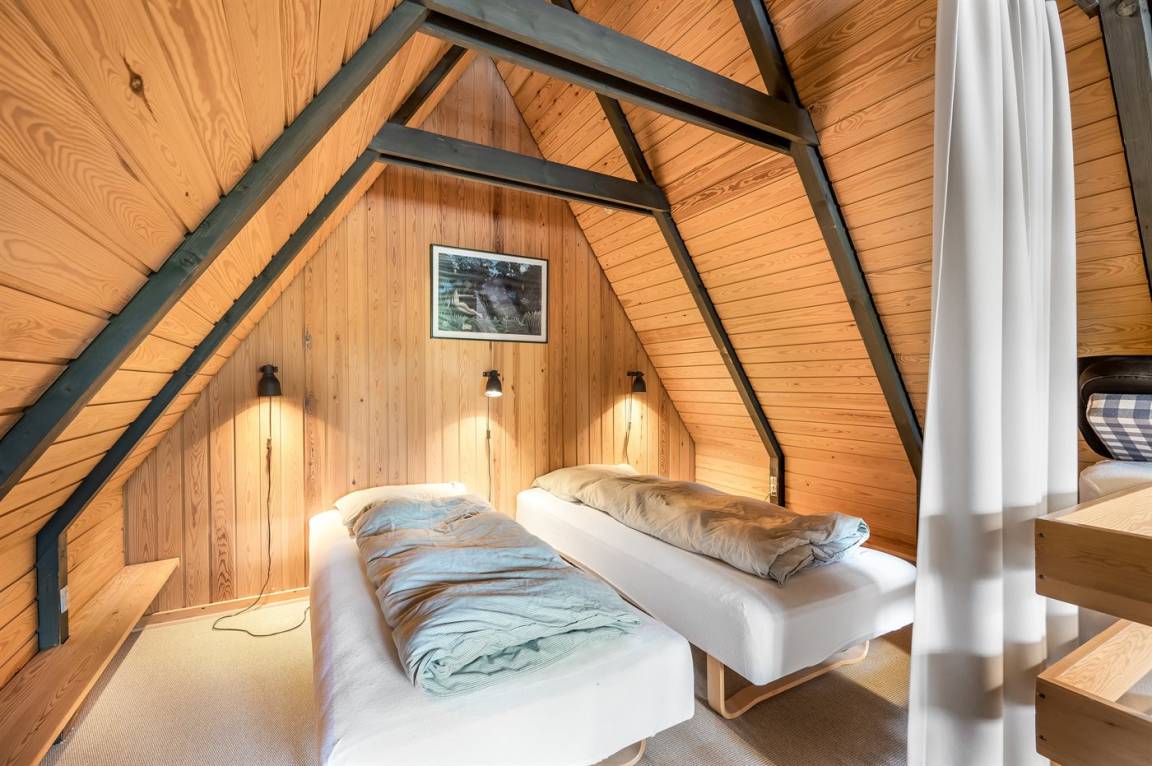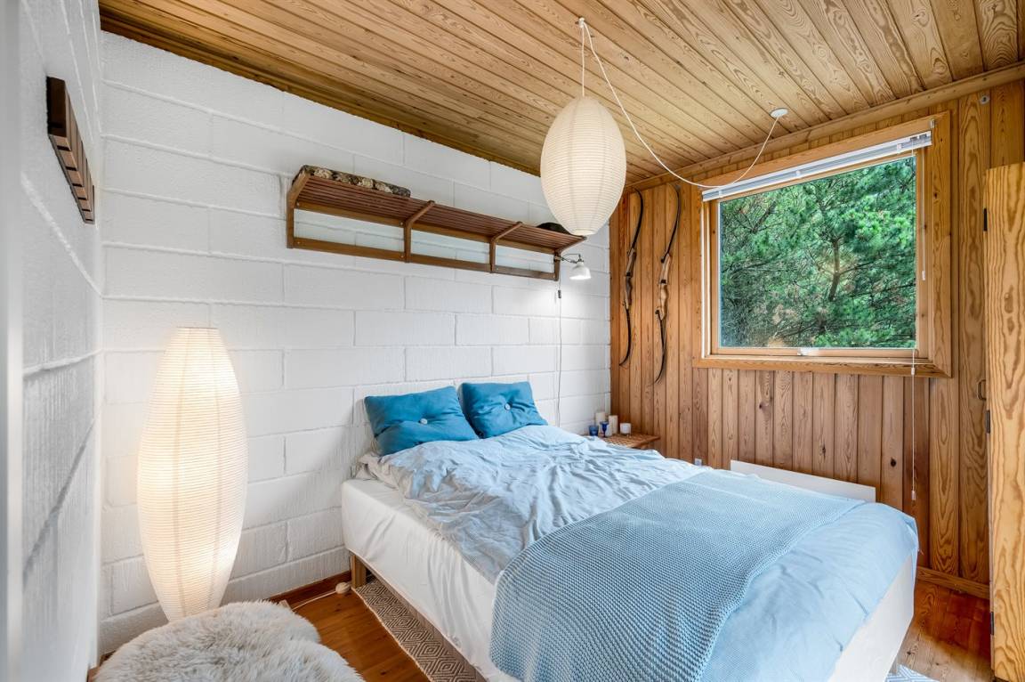 Ein gemütliches Ferienhaus, das an einer ruhigen Straße mitten in der Natur liegt. Das Ferienhaus ist in zwei Bereiche aufgeteilt - das Haupthaus, in 2 Etagen gebaut, mit zwei Schlafzimmern, einem Badezimmer, einem Wohnzimmer und einer Küche, sowie das Nebengebäude mit zwei großen Schlafzimmern und einem Badezimmer. Zwischen den beiden Gebäuden befindet sich eine große Holzterrasse, die zur Straßenseite hin abgeschirmt ist, sodass du dich ungestört auf dem Grundstück hinter dem Haus aufhalten kannst.
