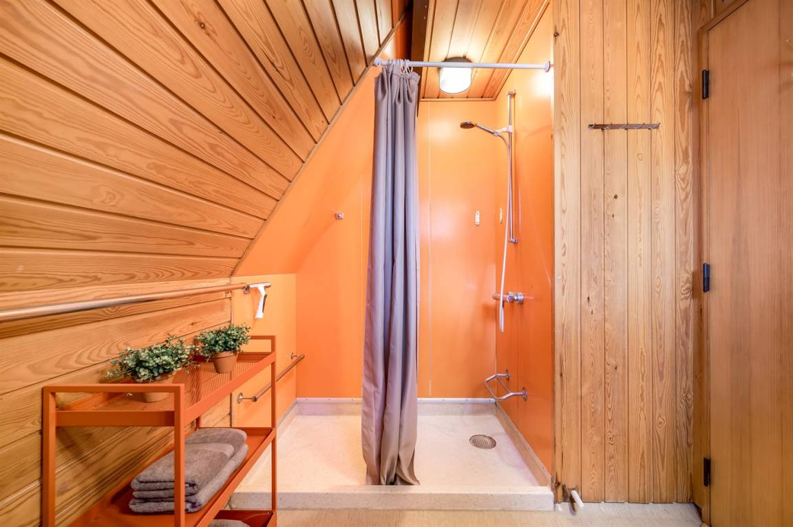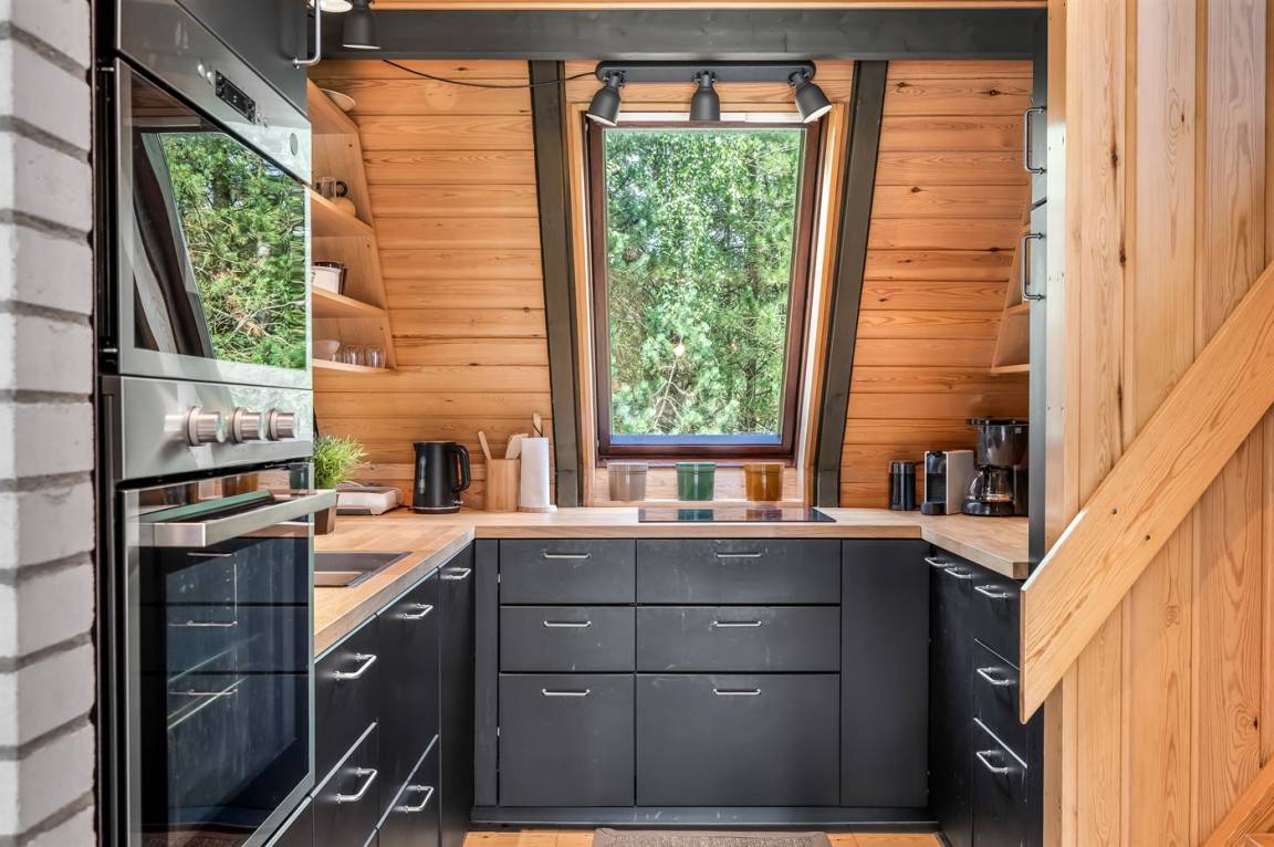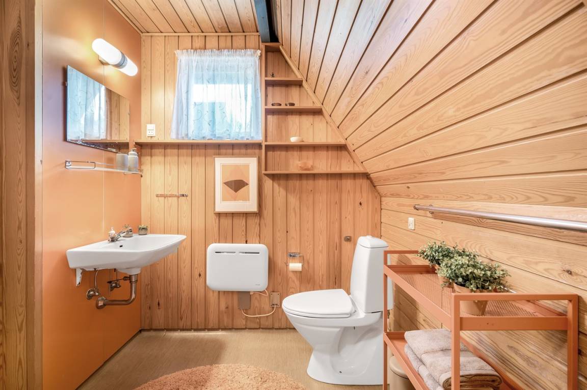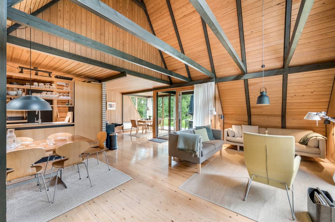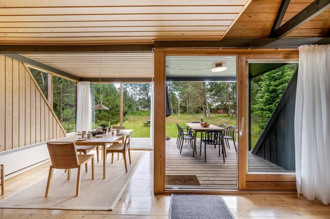 Ein gemütliches Ferienhaus, das an einer ruhigen Straße mitten in der Natur liegt. Das Ferienhaus ist in zwei Bereiche aufgeteilt - das Haupthaus, in 2 Etagen gebaut, mit zwei Schlafzimmern, einem Badezimmer, einem Wohnzimmer und einer Küche, sowie das Nebengebäude mit zwei großen Schlafzimmern und einem Badezimmer. Zwischen den beiden Gebäuden befindet sich eine große Holzterrasse, die zur Straßenseite hin abgeschirmt ist, sodass du dich ungestört auf dem Grundstück hinter dem Haus aufhalten kannst.