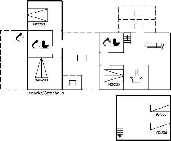 SchlafverhältnisseDie Schlafplätze verteilen sich auf 4 Schlafräume. 6 Schlafplätze in Doppelbetten. 2 Schlafplätze in Einzelbetten. 4 dieser Schlafplätze befinden sich in einem Gästehaus(auf 2 Schlafzimmer verteilt). Fußbodenheizung im Gästehaus.