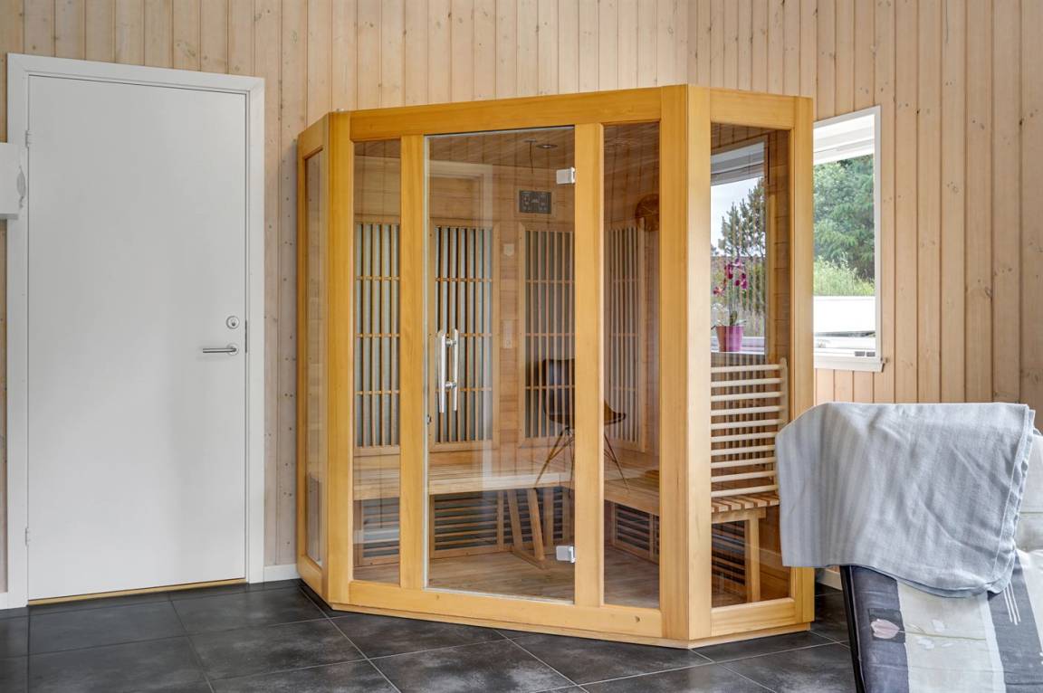 Großes, gut ausgestattetes Ferienhaus mit einem guten Wellness- und Aktivitätsangebot für sowohl draußen als auch drinnen. Das Haus eignet sich gut für eine Familie oder Freunde, die einen fantastischen Urlaub mit viel Unterhaltung verleben möchten. Auch für Treffen oder kleine Konferenzen ist das Haus geeignet. Zum Haus gehören 2 große Terrassen. Auf der Südterrasse können Sie fast den ganzen Tag ungestört Sonne genießen und von der überdachten Westterrasse aus haben Sie einen tollen Ausblick und Sonne bis zum Sonnenuntergang.