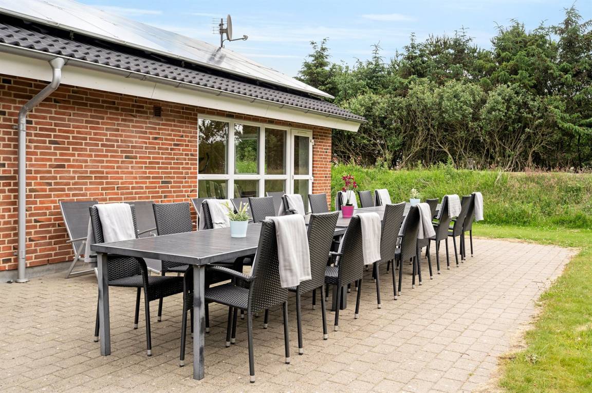 Das Ferienhaus eignet sich für 20 Personen sowie 5 Kleinkinder bis zu 3 Jahren. Die Ferienunterkunft hat eine Wohnfläche von 340 m² und wurde 1985 gebaut. 2012 wurde die Ferienunterkunft renoviert. Haustiere dürfen nicht mitgebracht werden. Die Ferienunterkunft ist mit energiesparender Wärmepumpe ausgestattet. Fußbodenheizung in allen Räumen. Die Ferienunterkunft ist mit Waschmaschine ausgestattet. Wäschetrockner. Tiefkühlmöglichkeit mit 200 Liter Nutzinhalt. Es gibt außerdem einen Kaminofen. Für die jüngsten Feriengäste sind 5 Kinderhochstühle vorhanden.