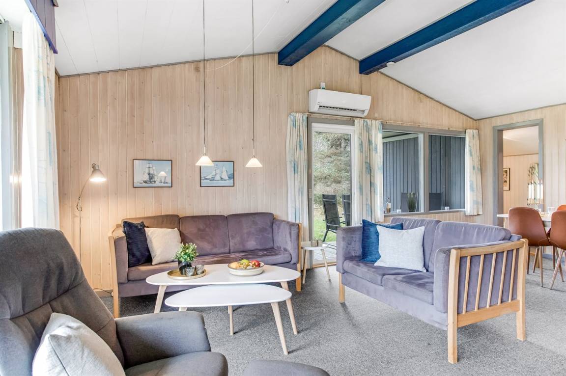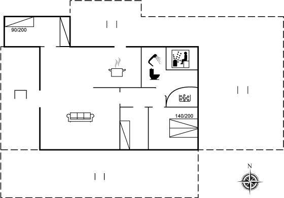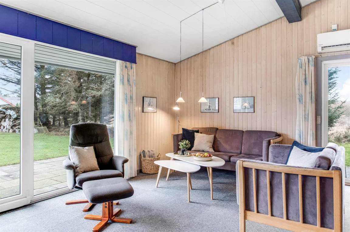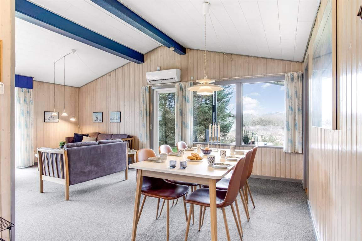 Der Mittelpunkt des Hauses ist die gemütliche, helle Wohnküche und das direkt angrenzende Wohnzimmer. Im Wohnzimmer gibt es ein Sofa-Arrangement, auf dem man die Aussicht aus den großen Fenstern Richtung Süden und Westen genießen und es sich natürlich vor dem Kamin gemütlich machen kann. Kostenloses Brennholz steht zur Verfügung. Zudem steht ein 1 Fernseher mit mindestens 3 dänischen und mindestens 50 deutschen Sendern zur Verfügung.