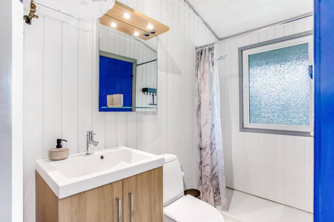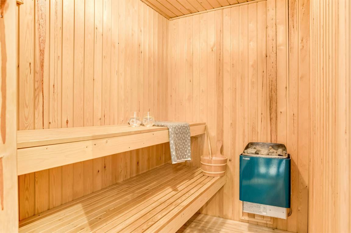 Das Badezimmer ist mit einem 1-Personen-Whirlpool und einer Sauna ausgestattet, sodass man sich hier gut entspannen kann. Dusche und Toilette sind ebenfalls vorhanden.