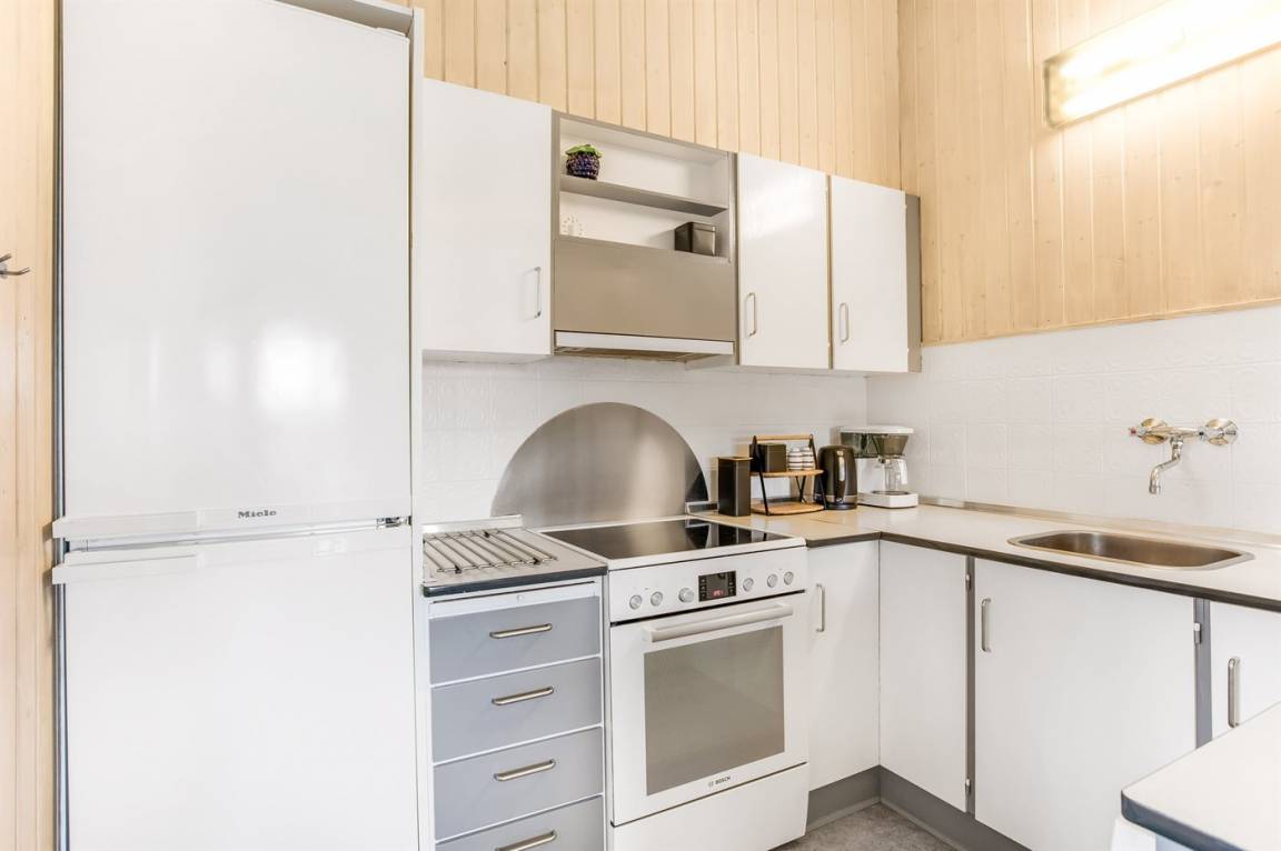 Die Küche ist mit 1 Kühl-/Gefrierschrank mit einer Tiefkühlkapazität von 90 l, 4 elektrischen Kochplatten, einem Backofen, einer Mikrowelle, einer Spülmaschine und Stauraum für Lebensmittel usw. ausgestattet.