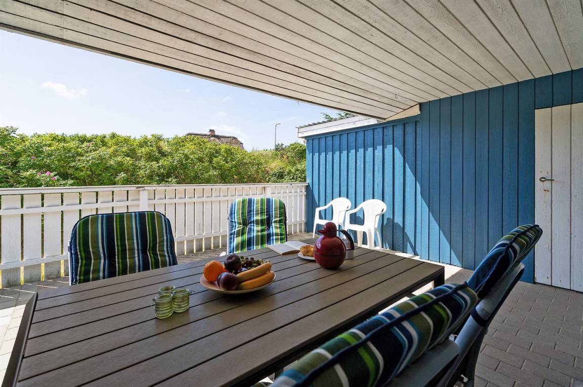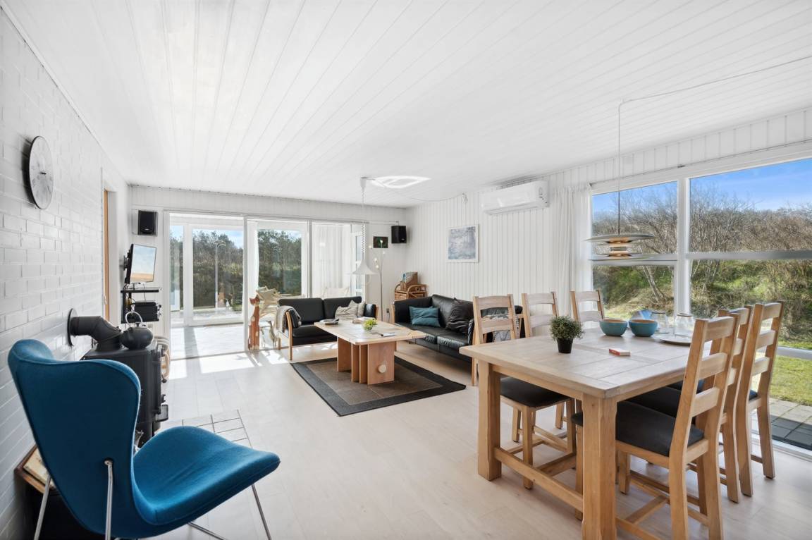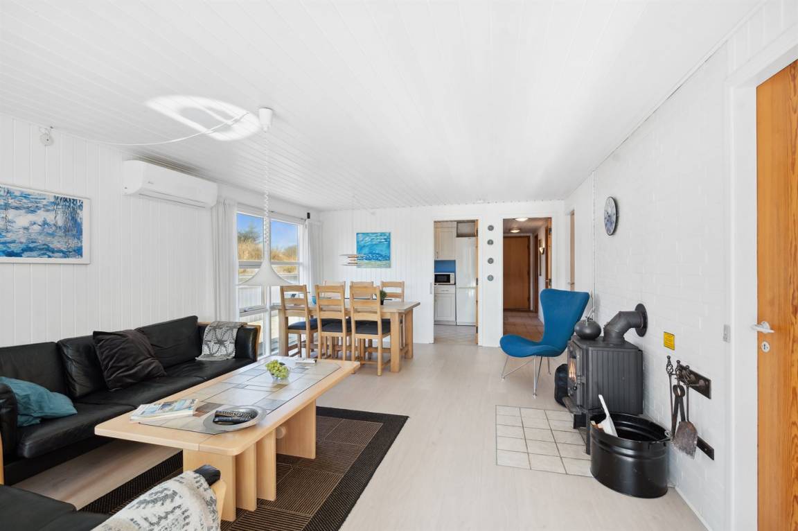 Nur 500 m von der Nordsee entfernt liegt dieses schöne Ferienhaus, das sich für 6 Personen eignet. Das Ferienhaus hat eine Wohnfläche von 115 m² und wurde 1970 gebaut. 2007 wurde das Ferienhaus teilweise renoviert und ist außerdem laufend instand gehalten. Das Haus liegt auf einem 1.800 m² großen Naturgrundstück und es stehen Carport und Parkmöglichkeit auf dem Grundstück zur Verfügung. Die nächste Einkaufsmöglichkeit liegt im Gehabstand vom Haus entfernt - außerdem kann man den Bäcker, Fachgeschäfte, eine Bar sowie verschiedene Kunstgalerien und Restaurants zu Fuß erreichen. Zum Haus gehören 20 m² offene und 20 m² überdachte Terrasse sowie ein Wintergarten. Die Schlafplätze verteilen sich auf 3 Zimmer: 2 mit Doppelbett und 1 mit 2 Einzelbetten. Die Küche ist u.a. mit Geschirrspülmaschine, E-Herd mit 4 Kochfelder, Kühlschrank, Tiefkühlgerät mit einer Kapazität von 60 Liter und Mikrowelle ausgestattet. Badezimmer mit Duschnische und Zugang zur Sauna des Hauses. An weiterer Ausstattung können Kaminofen, TV, Radio, kostenlose, kabellose Internetverbindung sowie Waschmaschine und Wäschetrockner erwähnt werden.